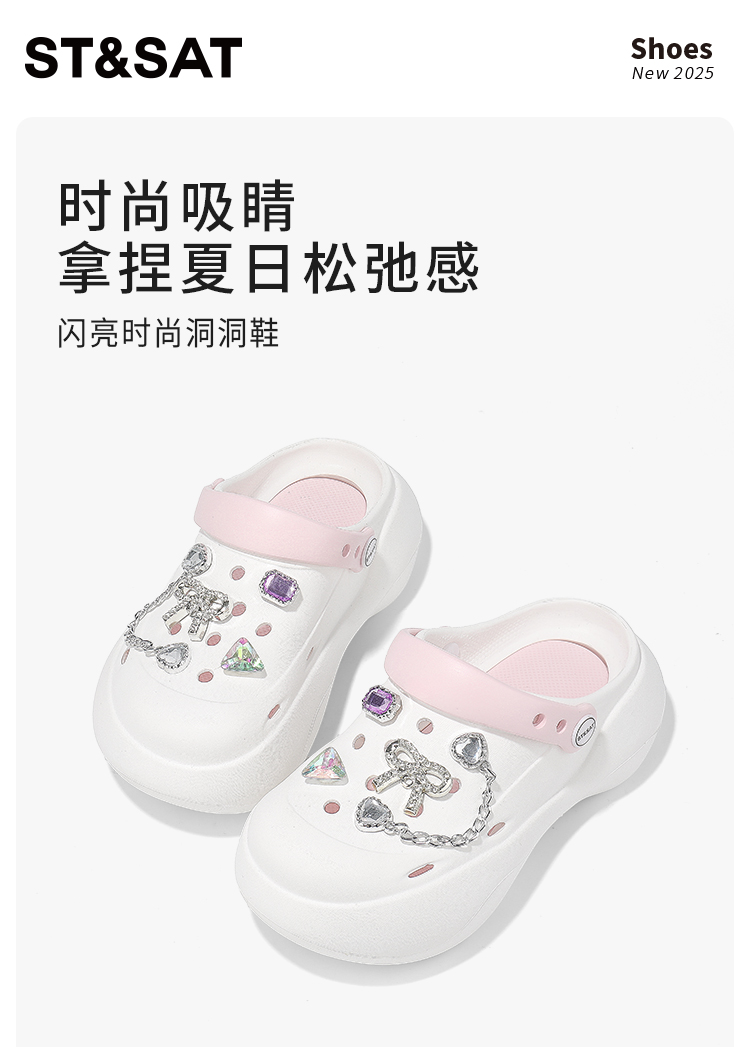 【童鞋】星期六精致钻饰鞋花透气女童洞洞鞋SSD2195U28