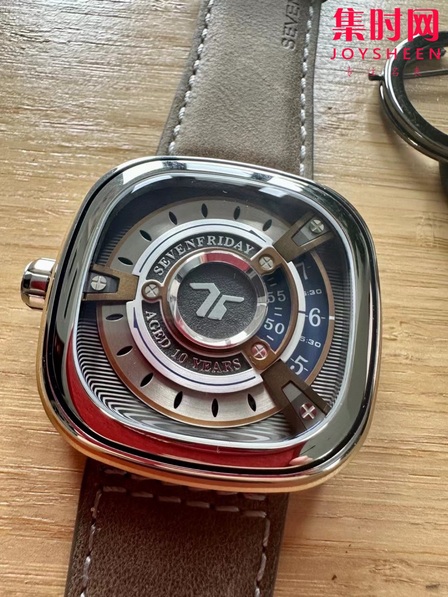男士腕表 十周年限量300只,原装进口西铁城全自动机械机芯。气势磅礴的七层面盘,7F 标志饰板大胆又自信,分納盛 “SEVENFRIDAY, AGED 10 YEARS"。字承载着美好时光。