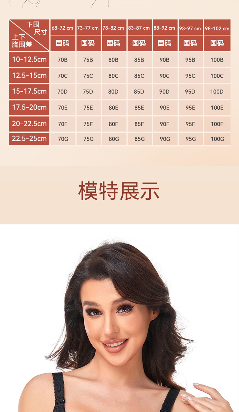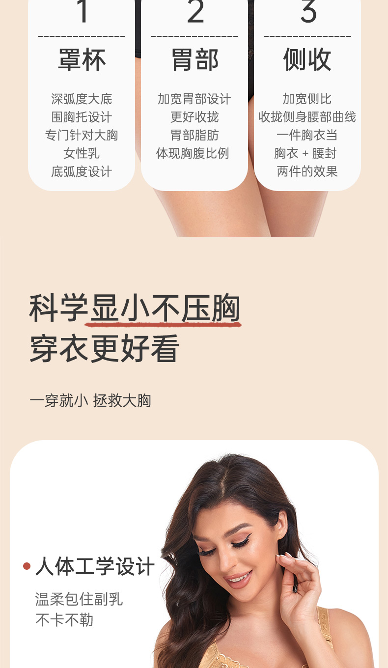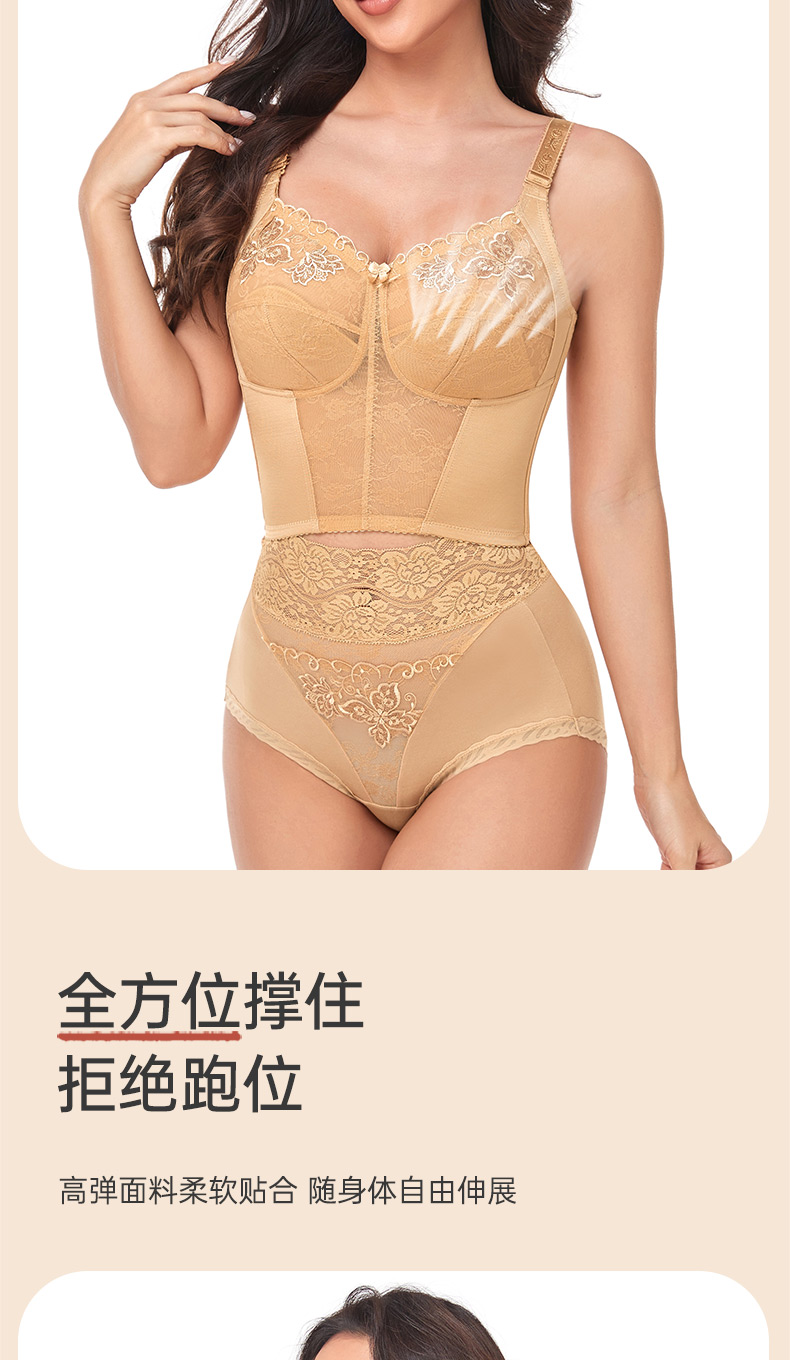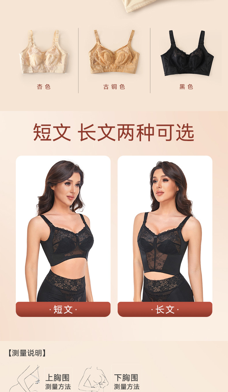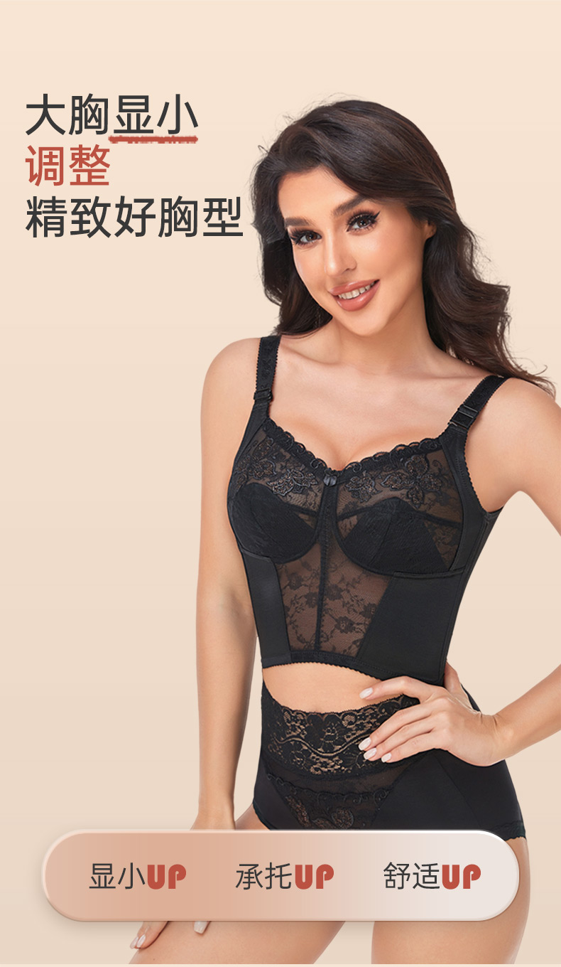 大胸显小,全罩杯,无钢圈,蔷薇花园长款调整型文胸