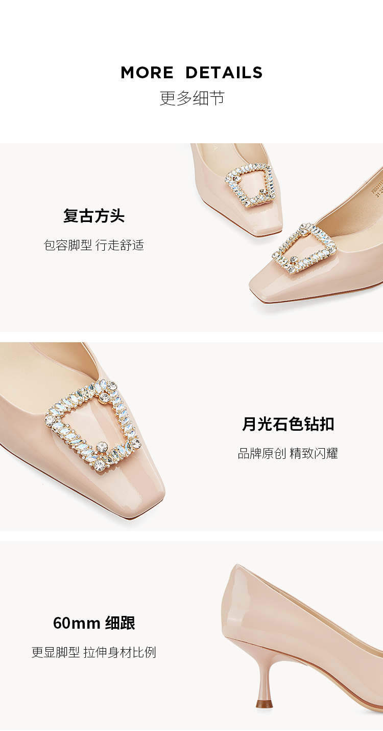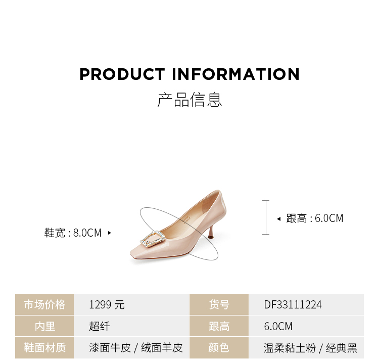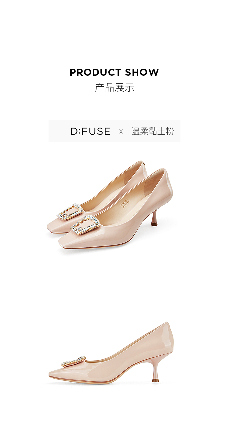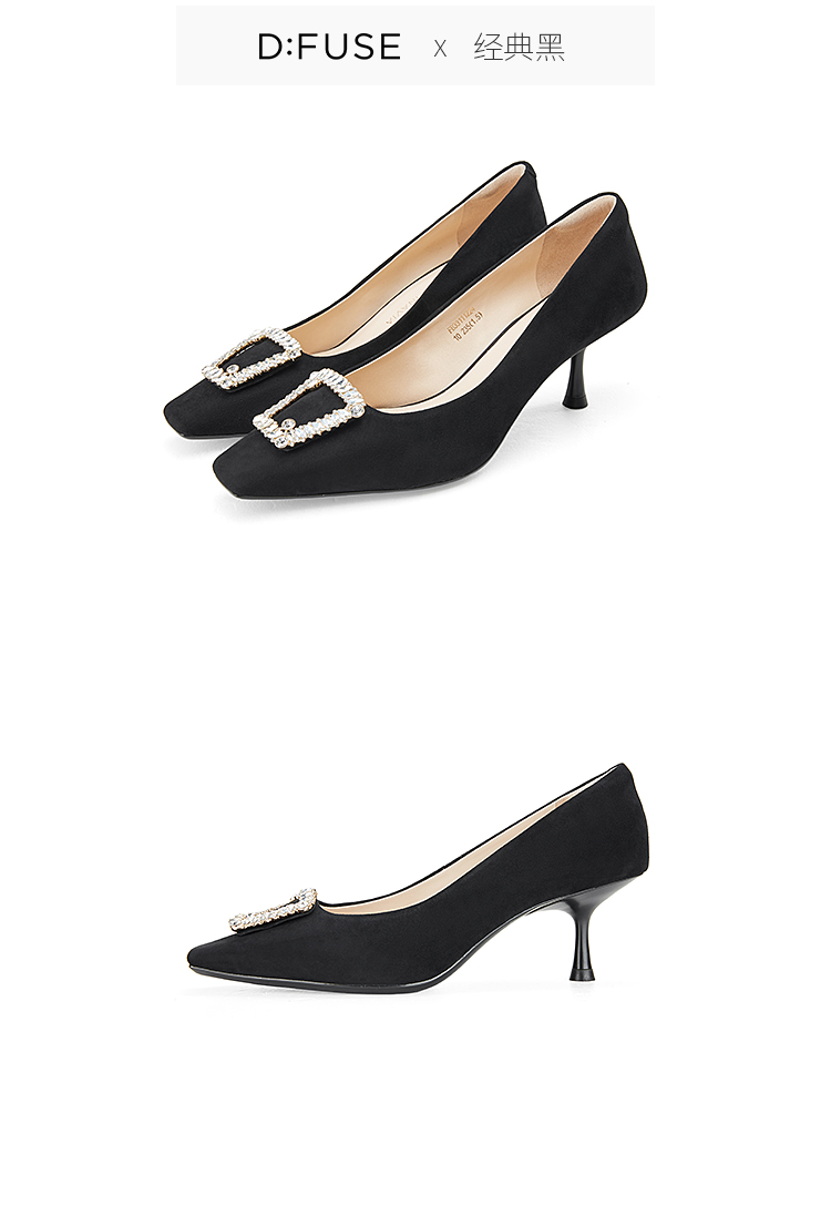 Dfuse迪芙斯秋款通勤方头钻扣细跟高跟鞋单鞋DF33111224