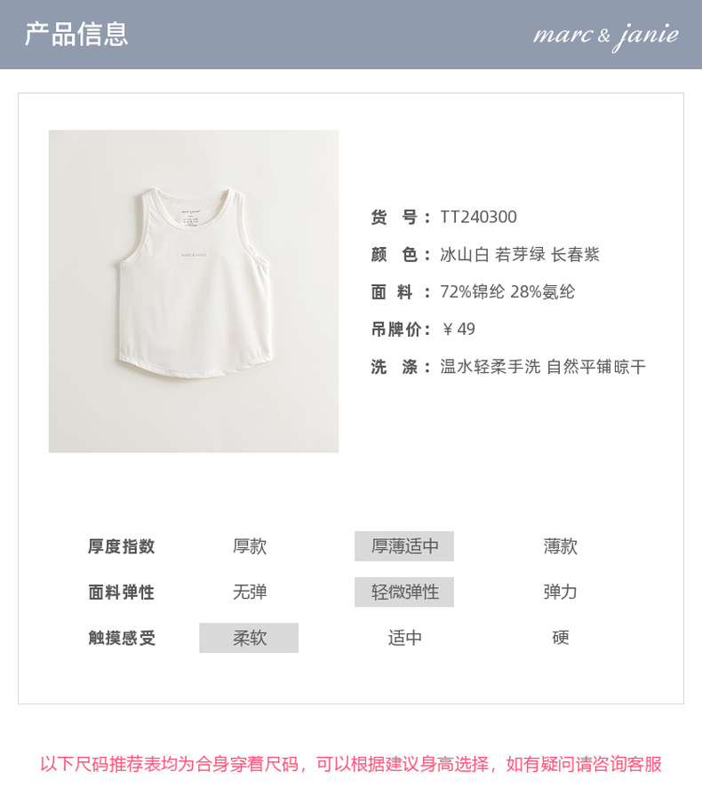 马克珍妮2024年夏装新款女童运动弹力字母透气背心240300