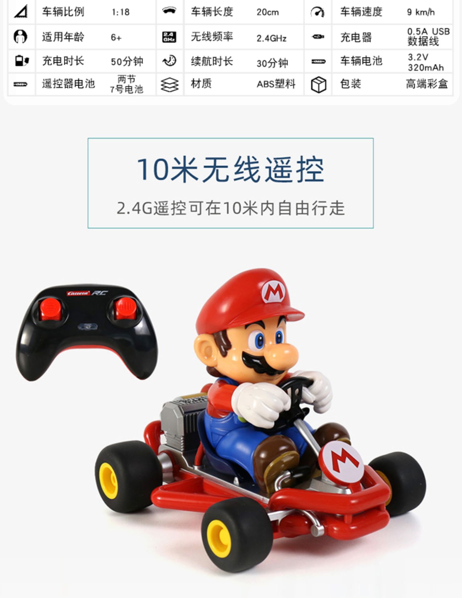 卡雷拉Carrera 1:18马里奥遥控车卡丁车款