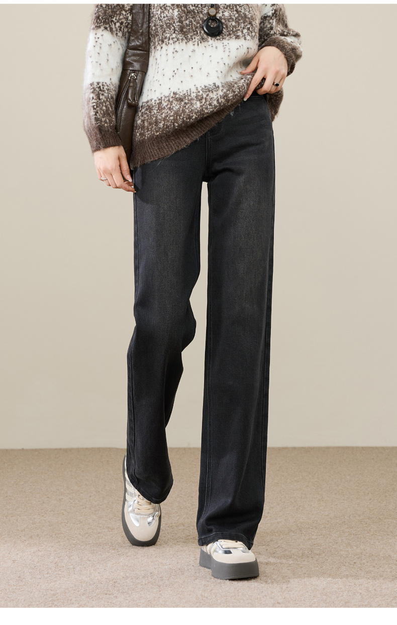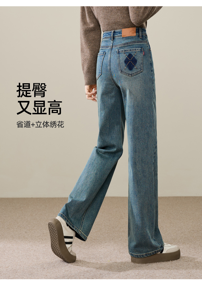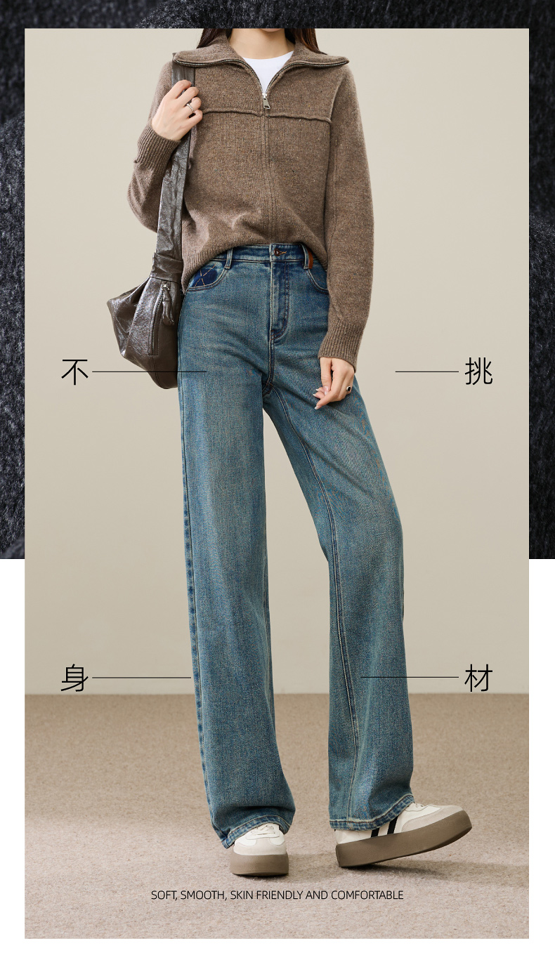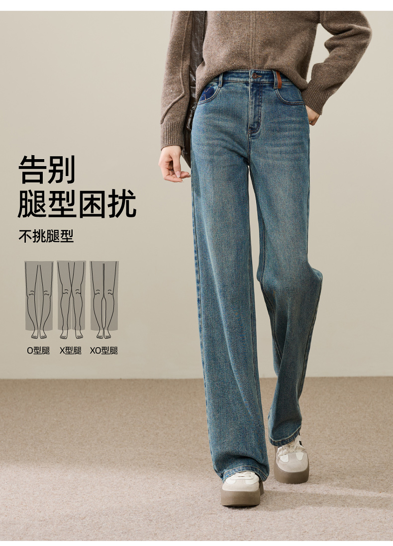 【拉绒-窄版-长直筒】逸阳冬新品复古加绒宽松显瘦窄版阔腿牛仔裤0350RA
