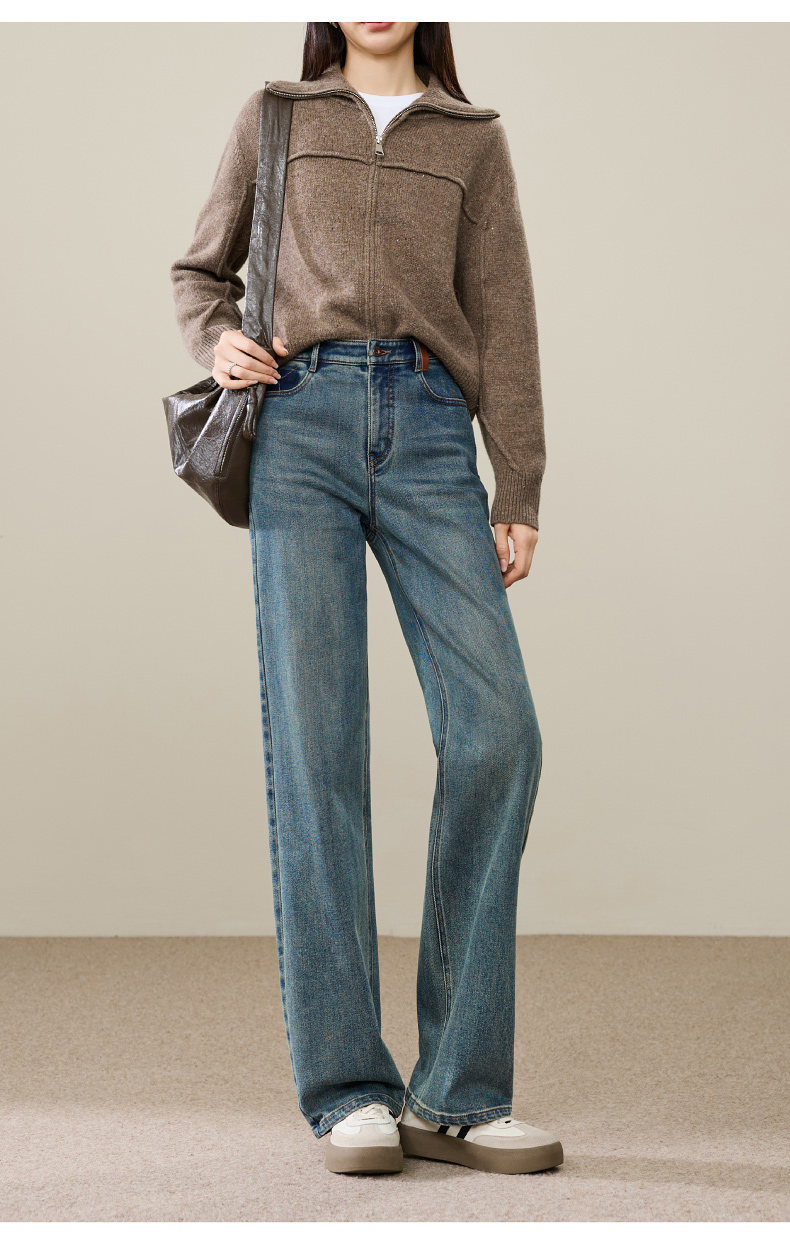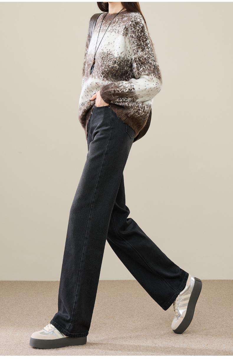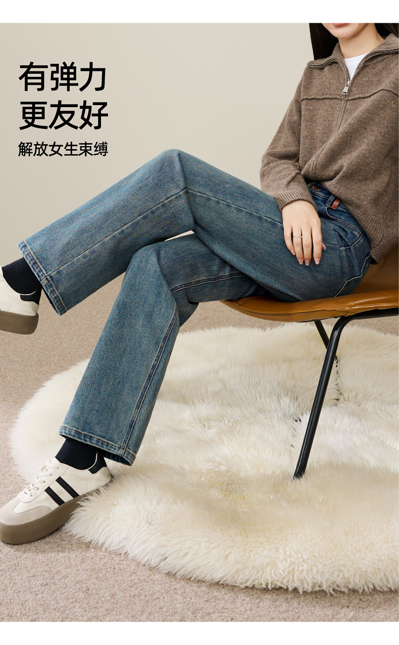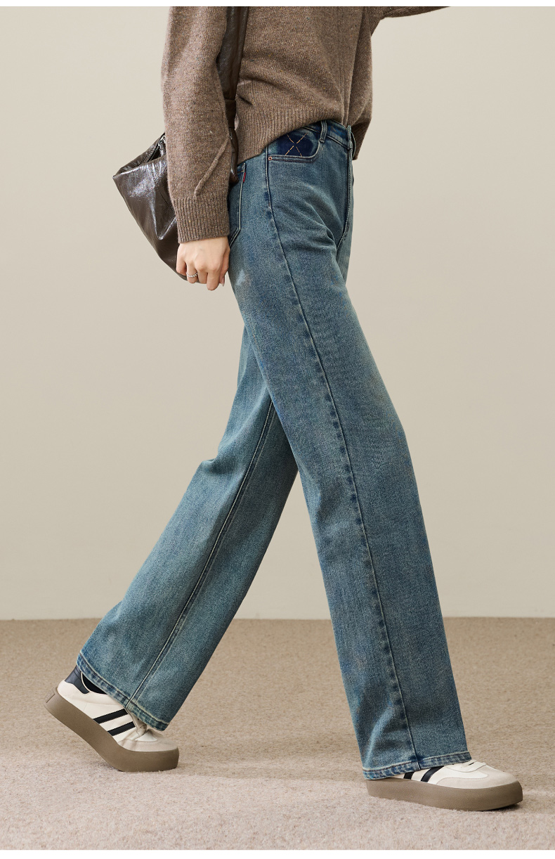 【拉绒-窄版-长直筒】逸阳冬新品复古加绒宽松显瘦窄版阔腿牛仔裤0350RA