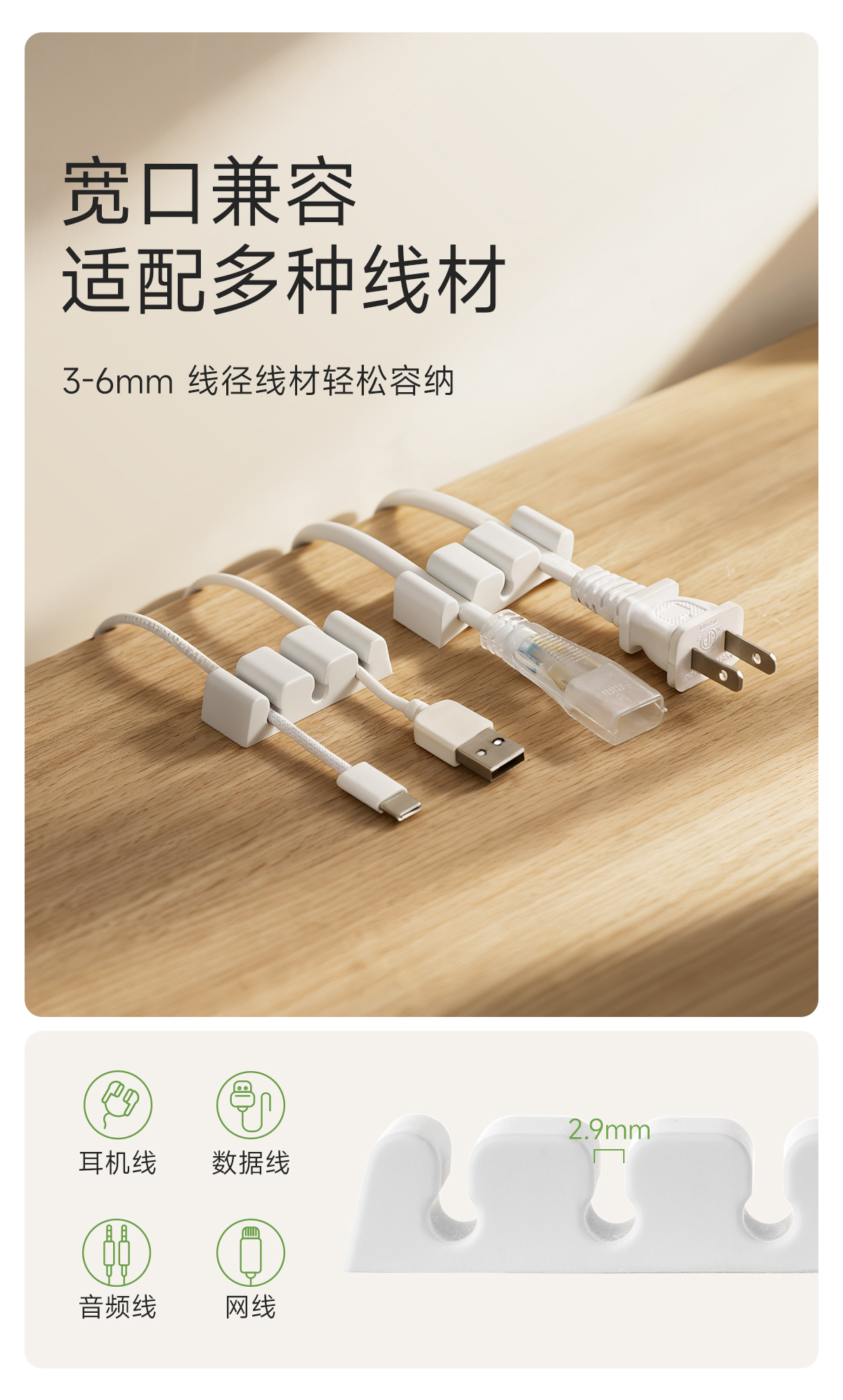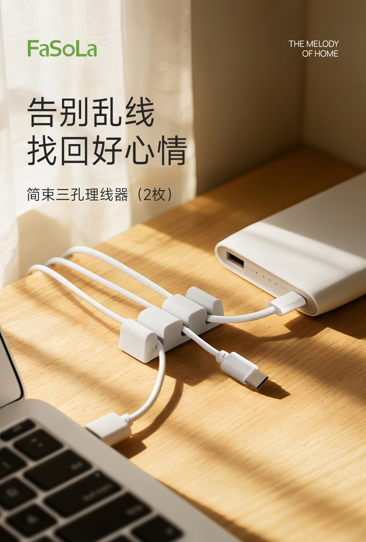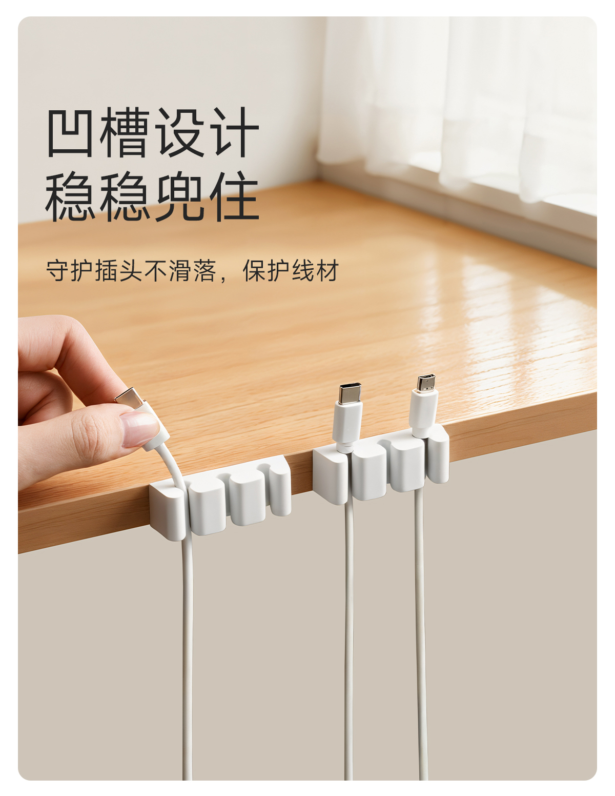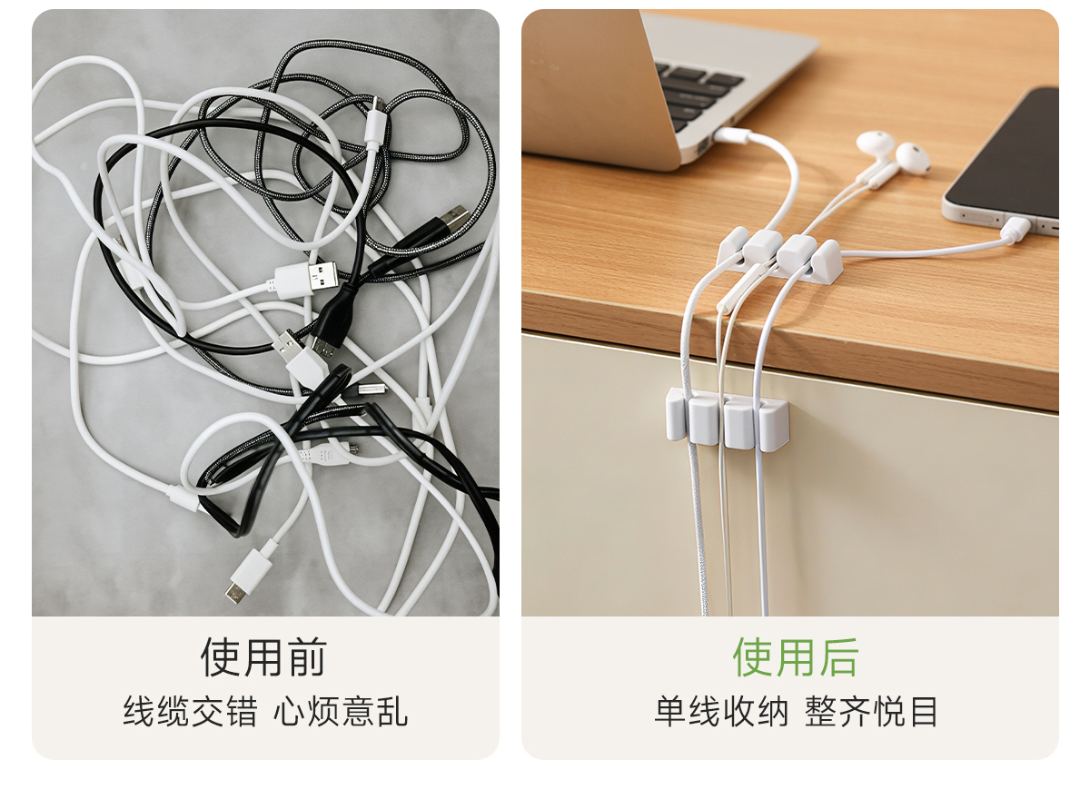FaSoLa桌面硅胶理线器充电线卡扣墙面床头鼠标线充电线固定器收纳
