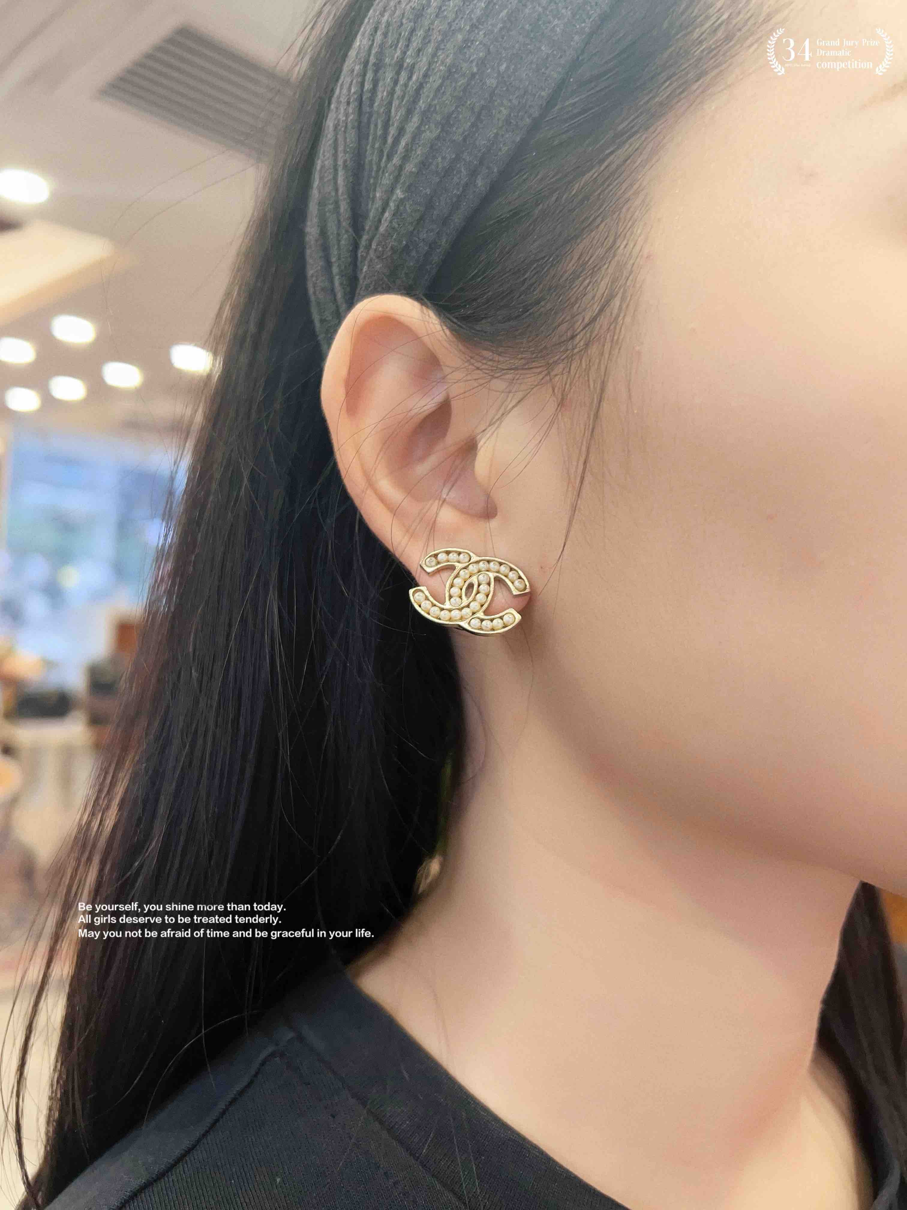 正品二手 Chanel 双c 浅金色 珍珠 耳环🌠95新 2x1.5。珍珠正常使用感。经典具有标志性。