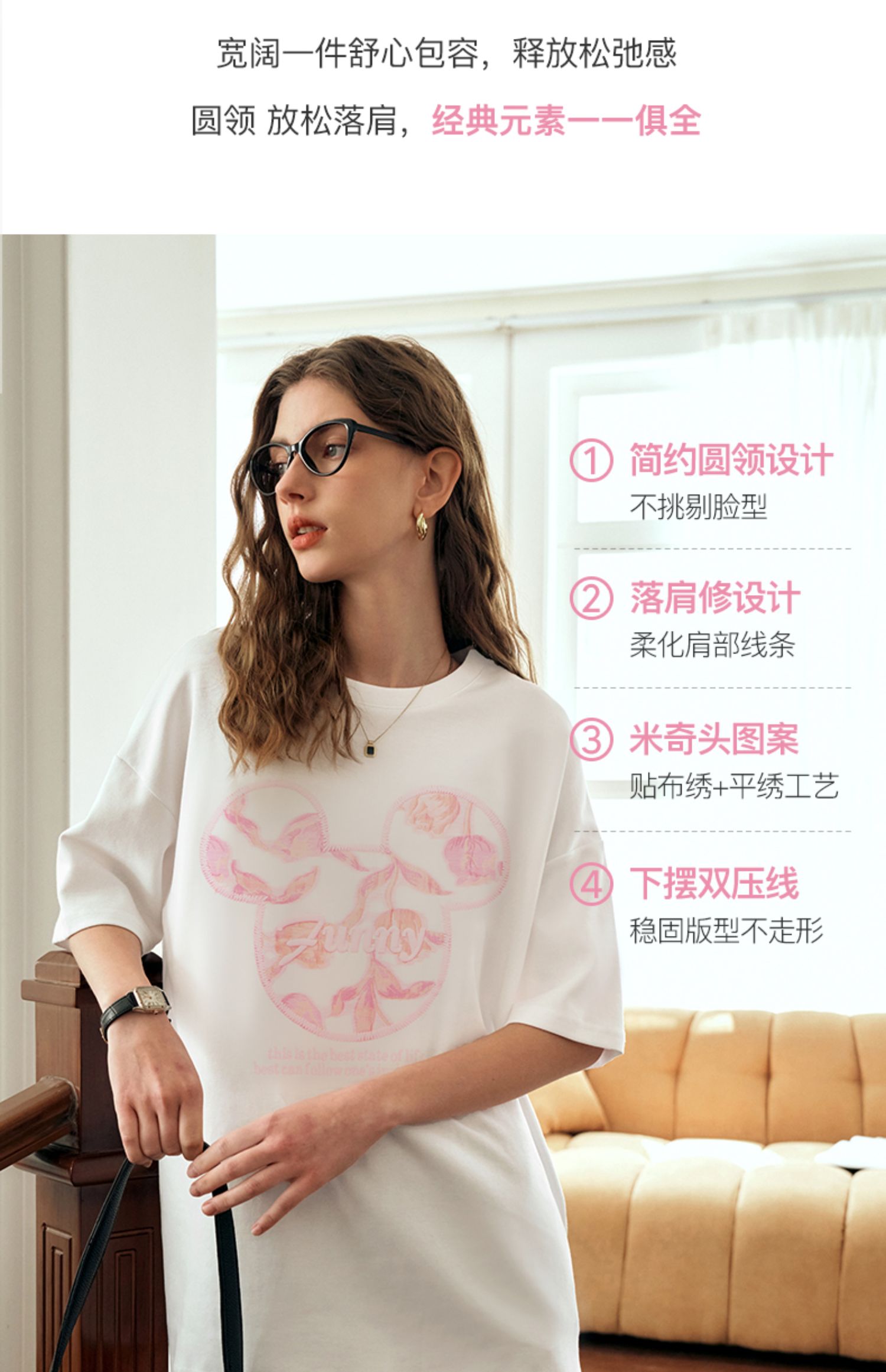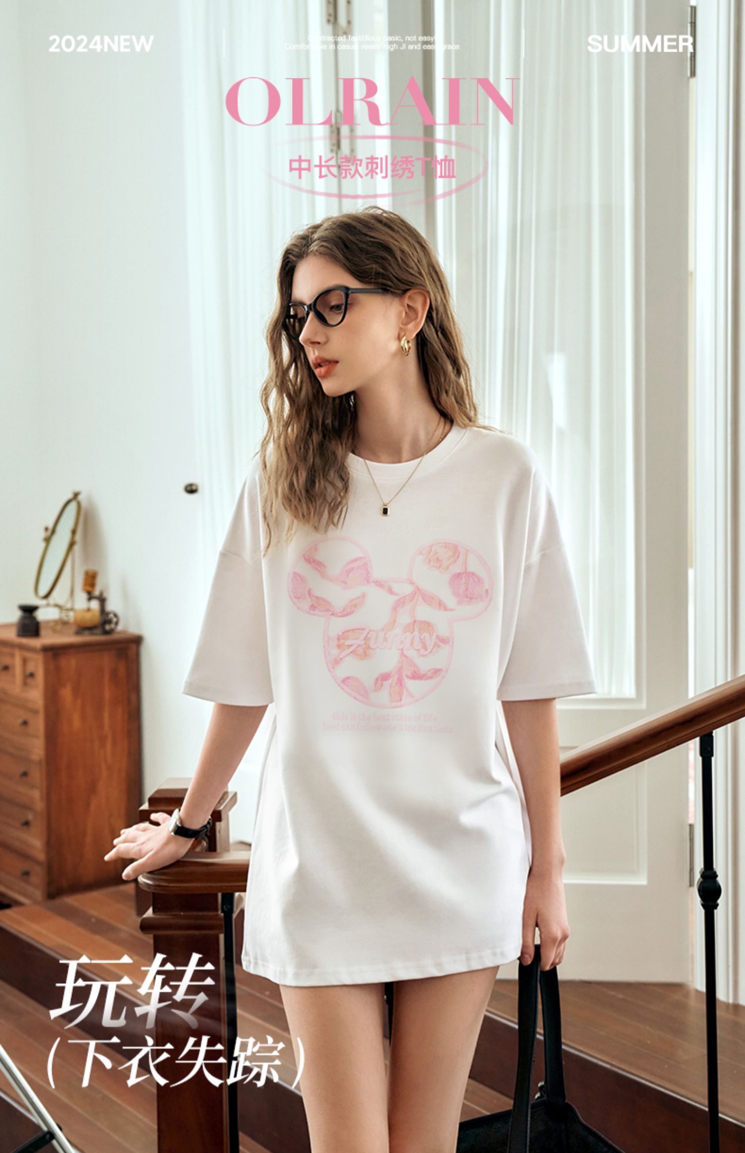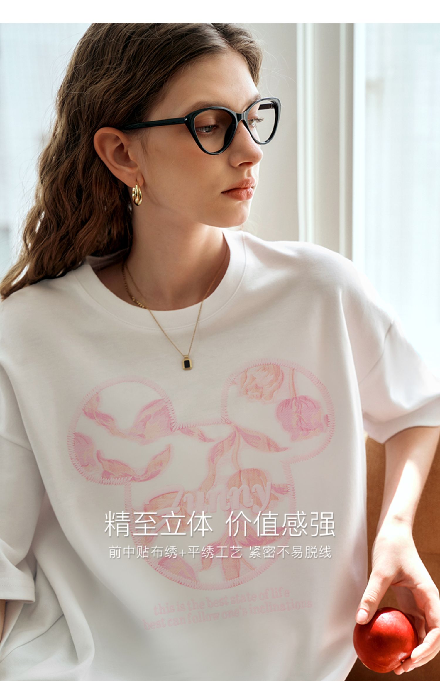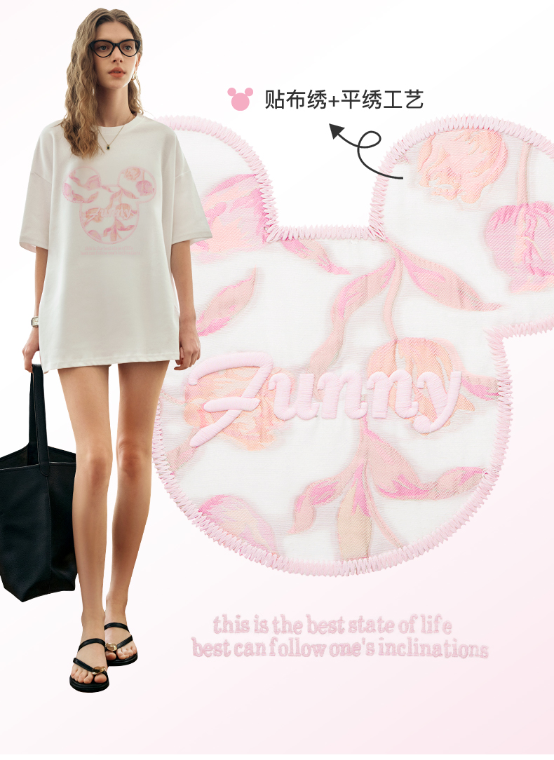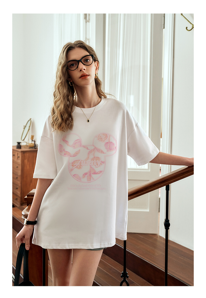 欧芮儿立体刺绣白色短袖T恤女夏季2024新款时尚宽松圆领慵懒上衣
