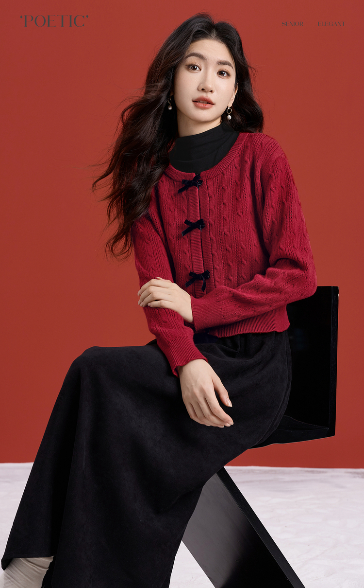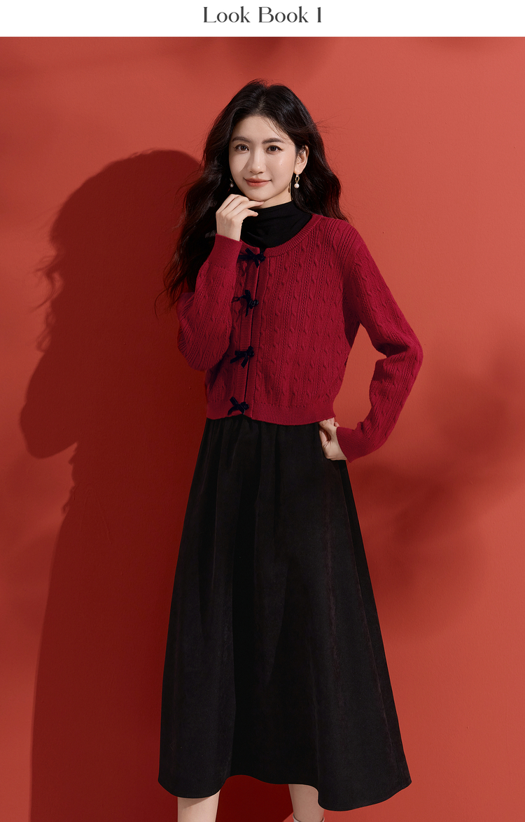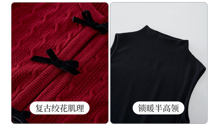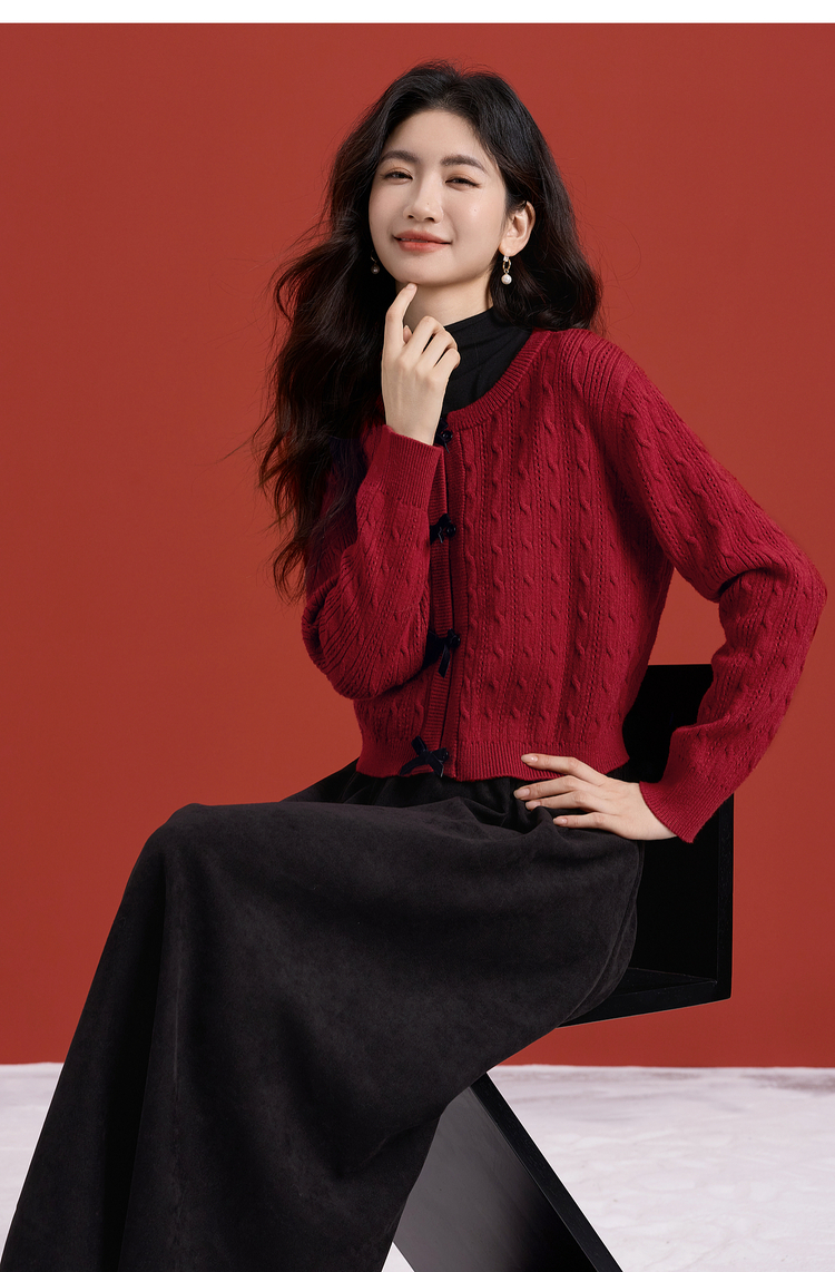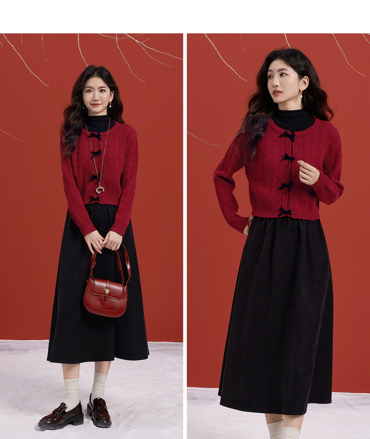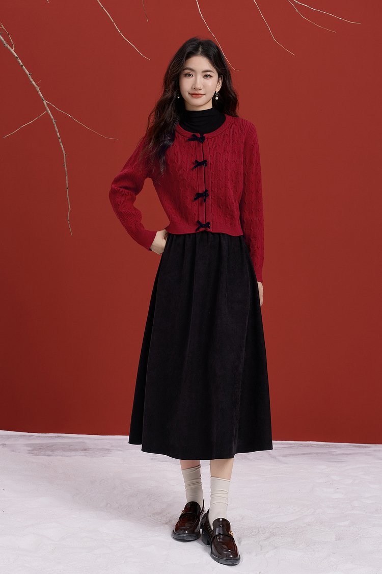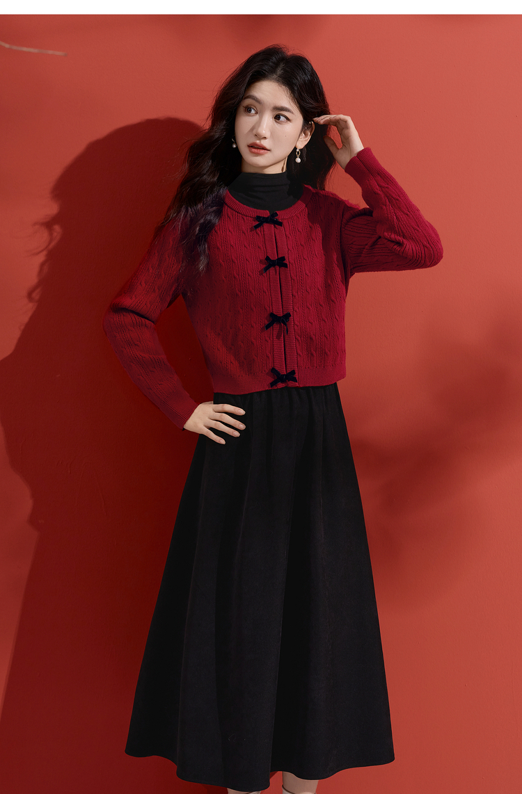 【12/10新品6折】熙世界氛围感圣诞穿搭红色针织毛衣开衫连衣裙两件套装女2025秋冬