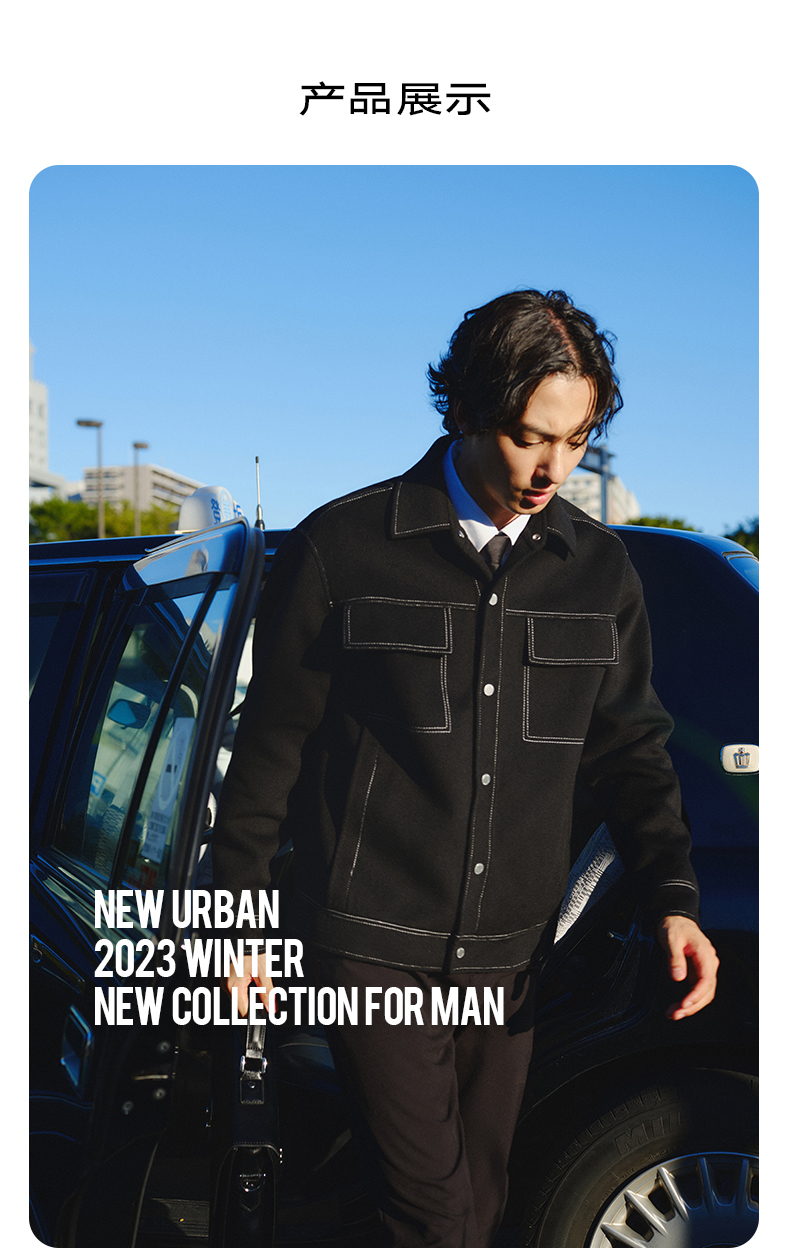 GXG男装 明线设计简约基础含羊毛短大衣毛呢外套男士冬季热卖大衣