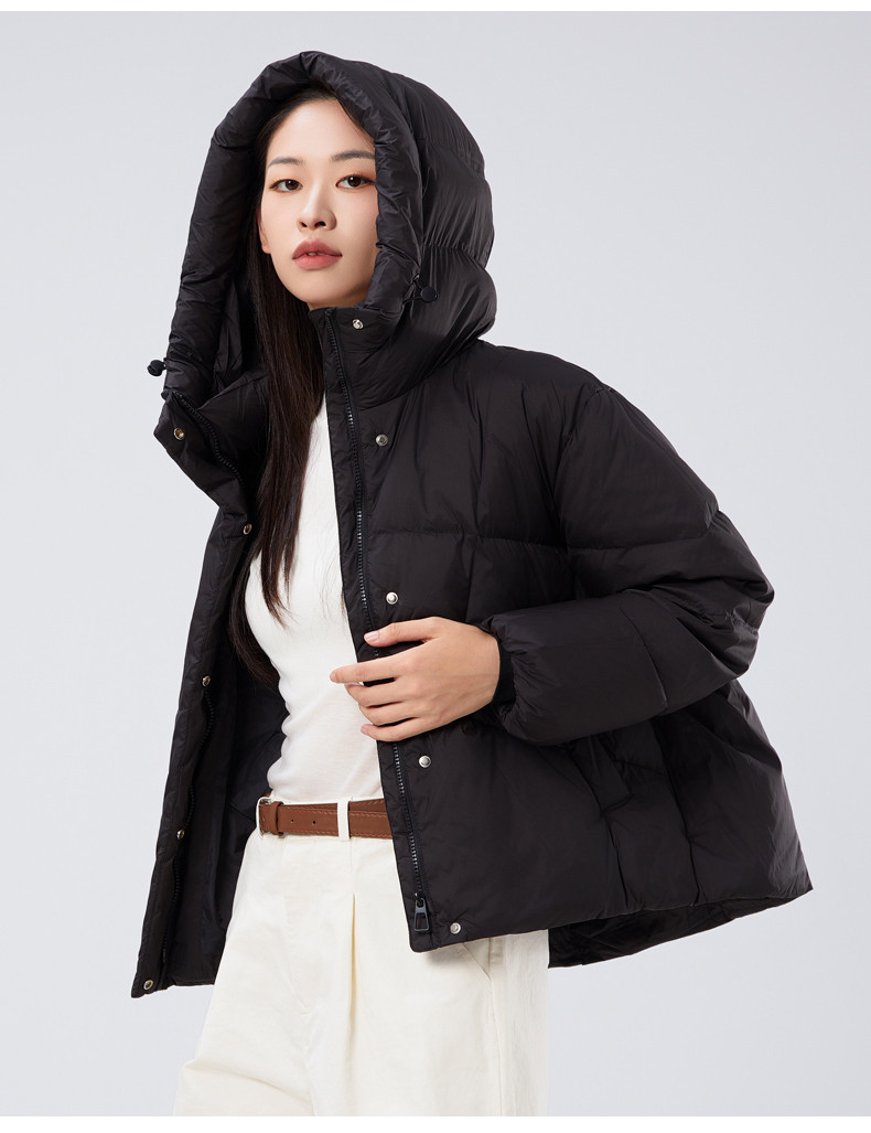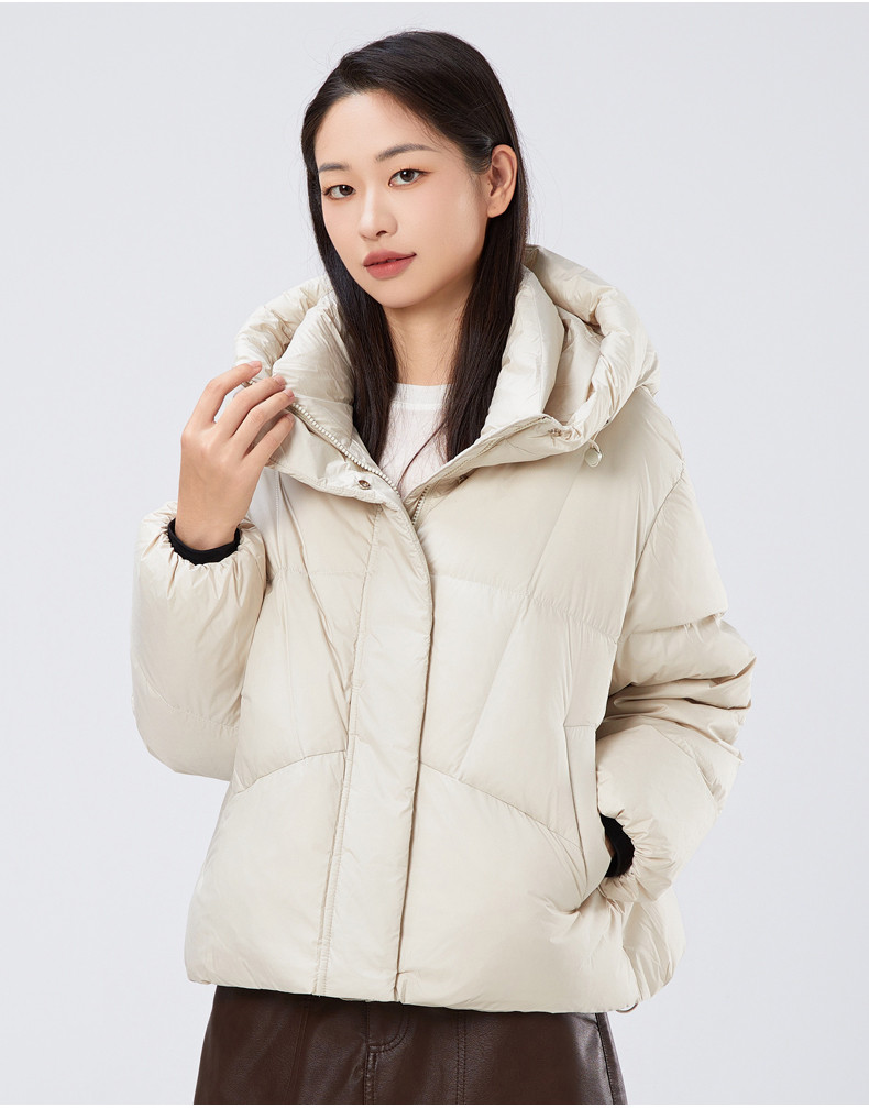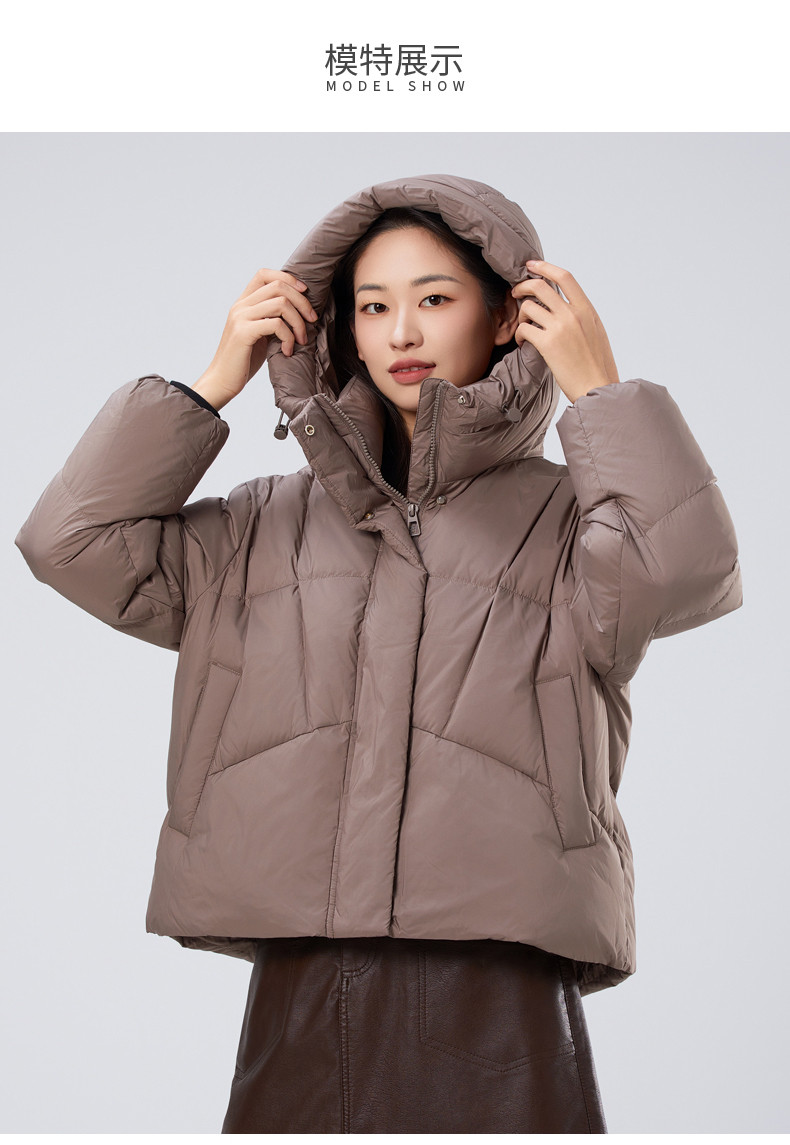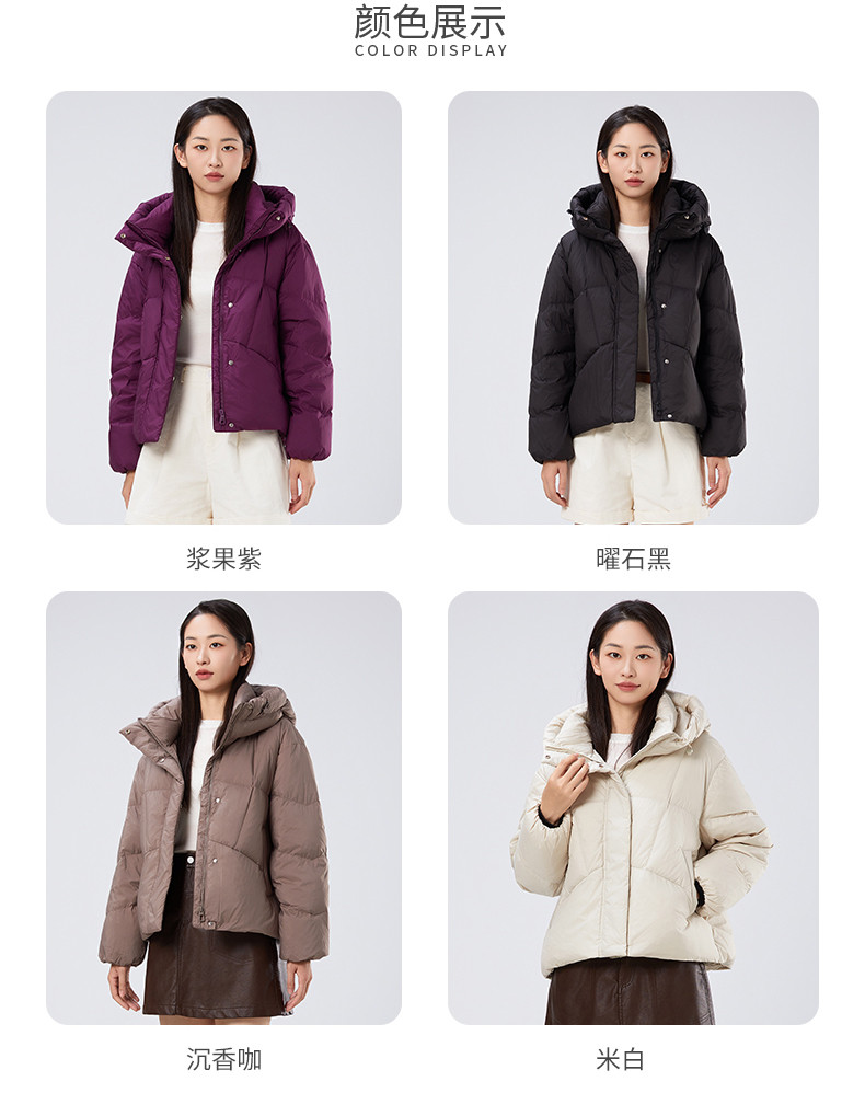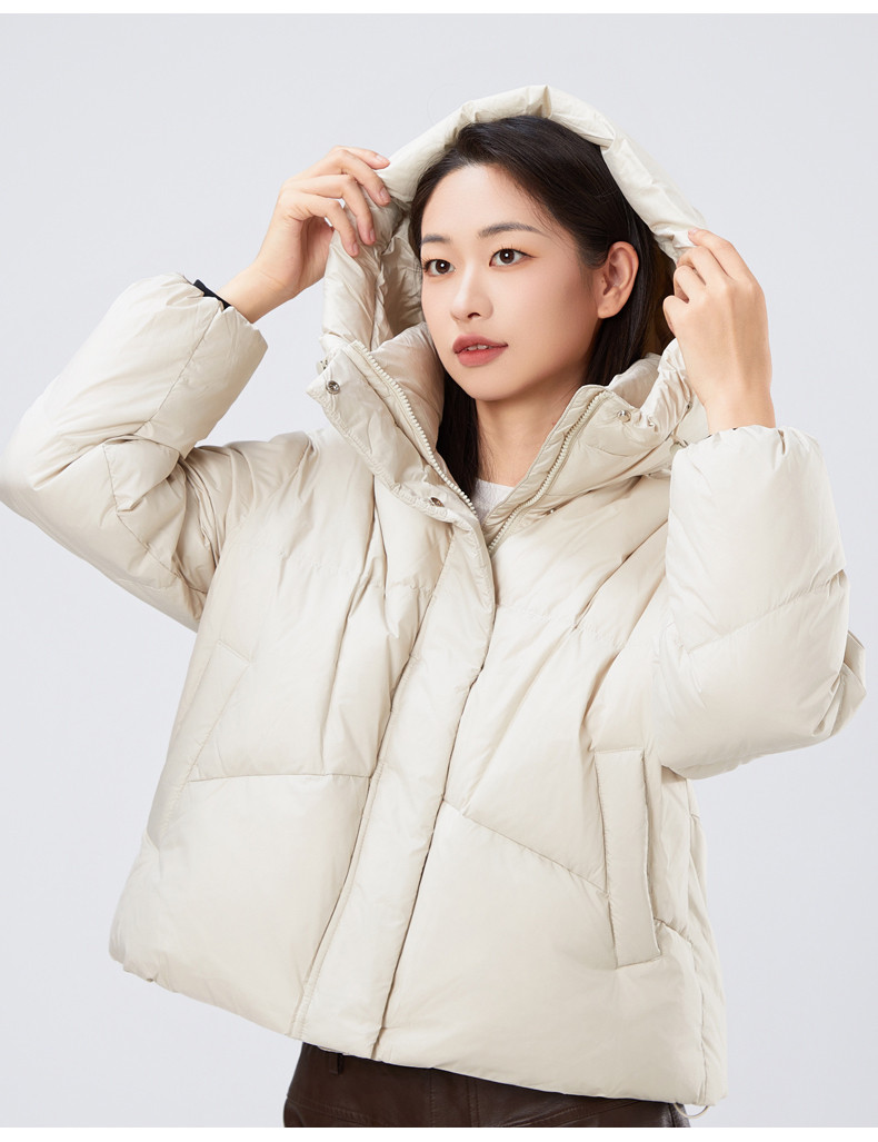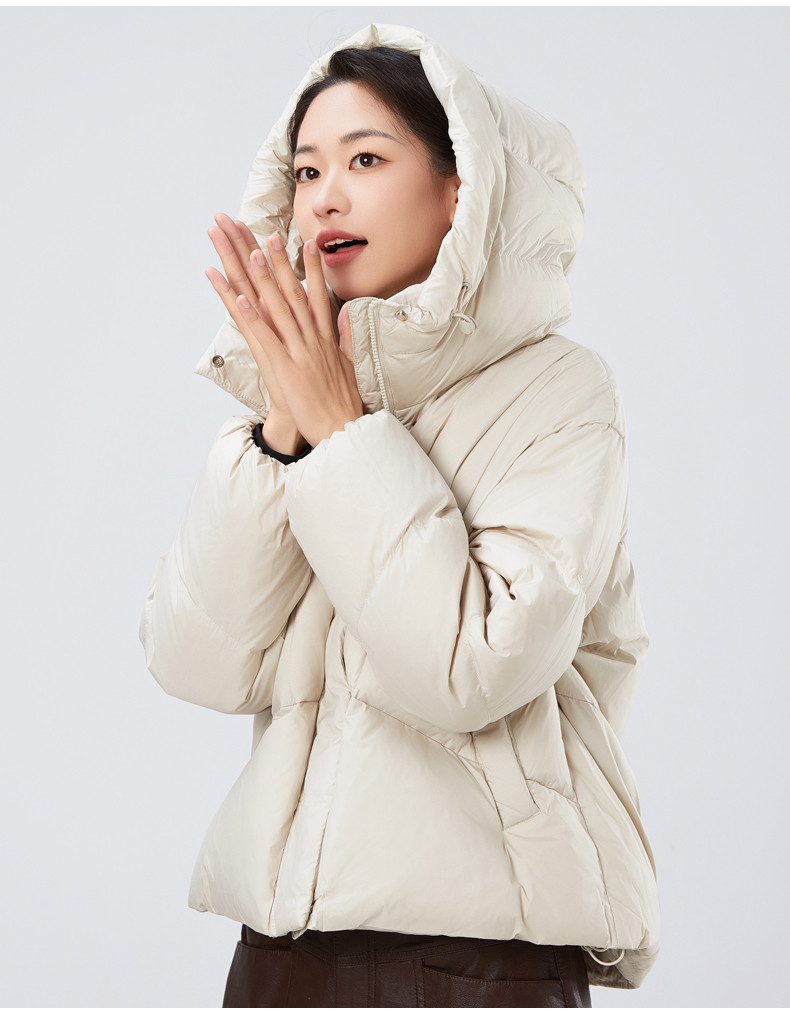 2025冬季女士短款白鸭绒纯色廓形加厚保暖连帽羽绒服9313【个调羽绒服专场】