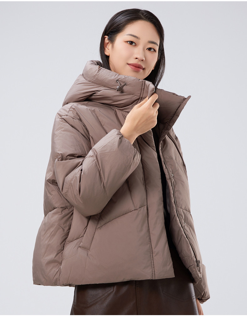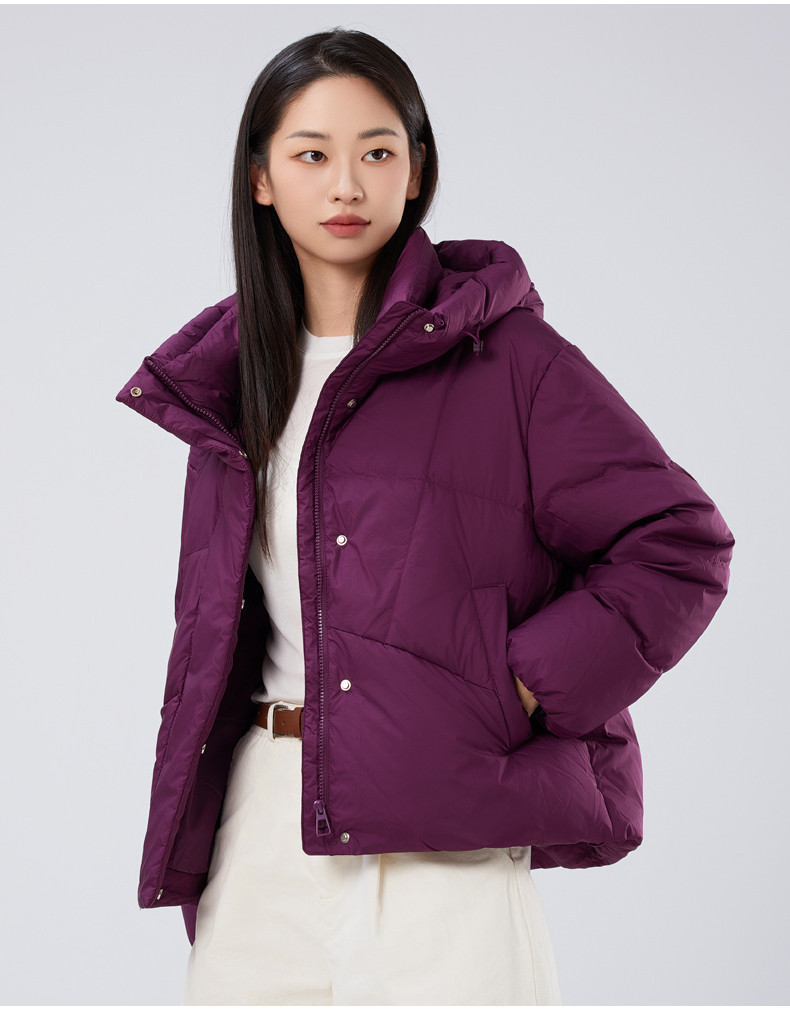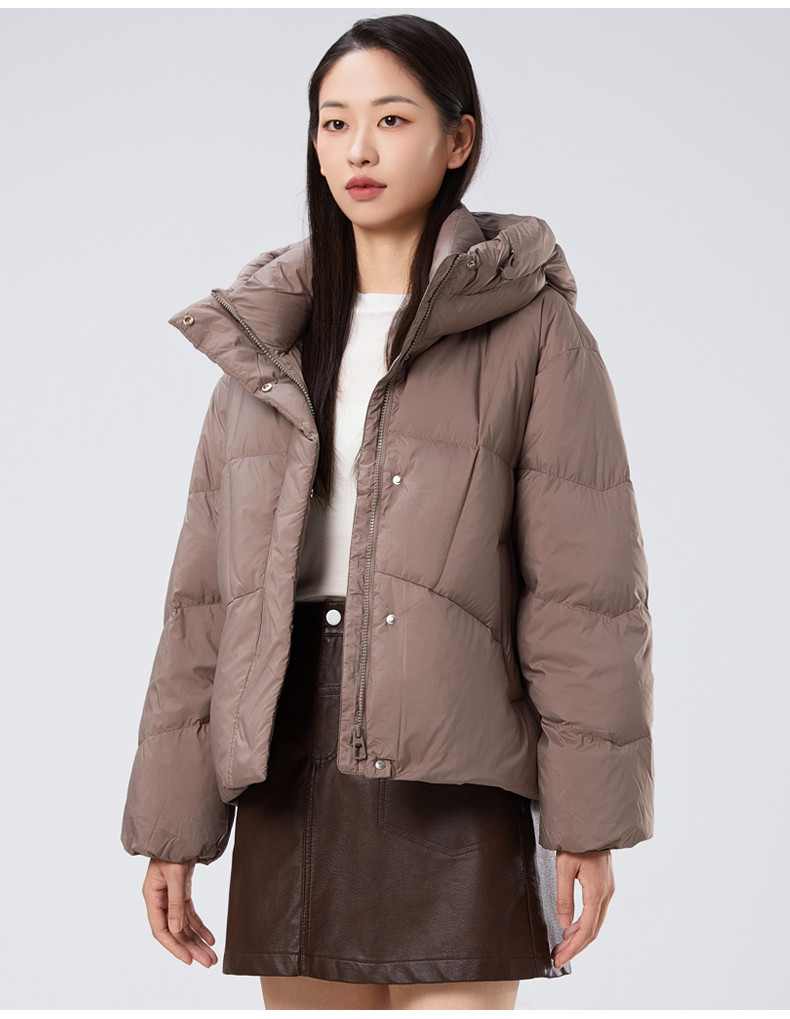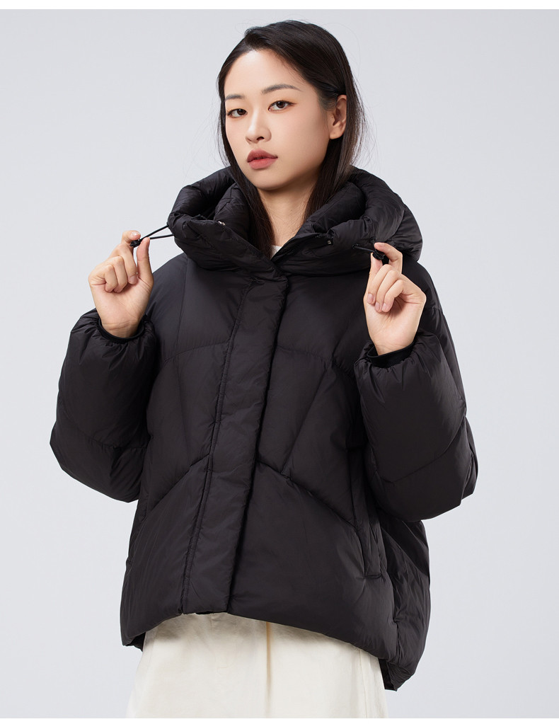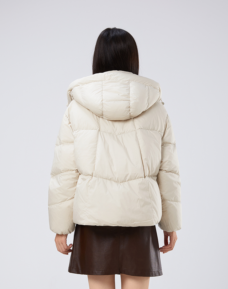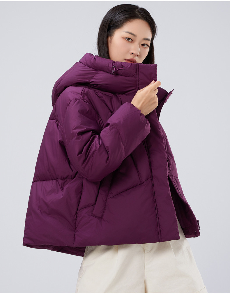2025冬季女士短款白鸭绒纯色廓形加厚保暖连帽羽绒服9313【个调羽绒服专场】