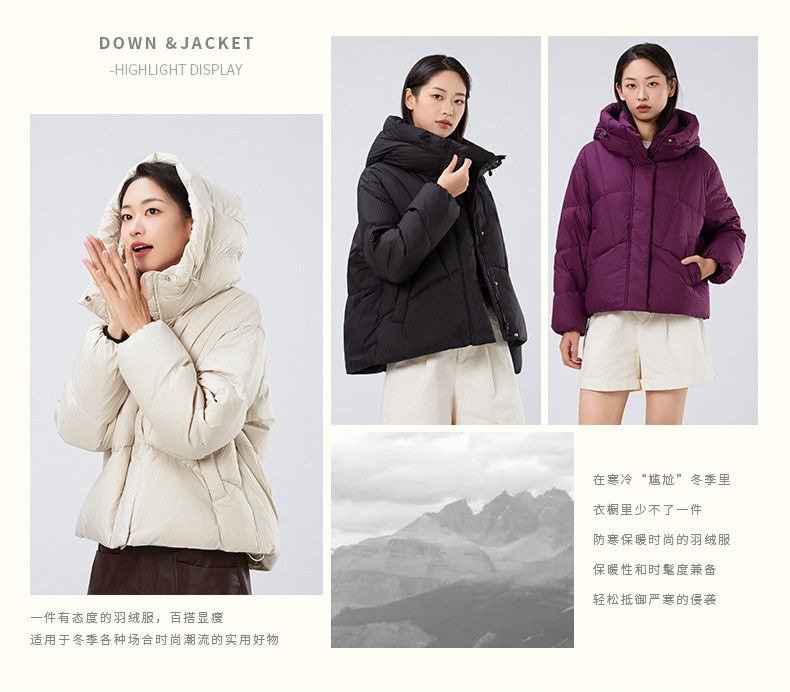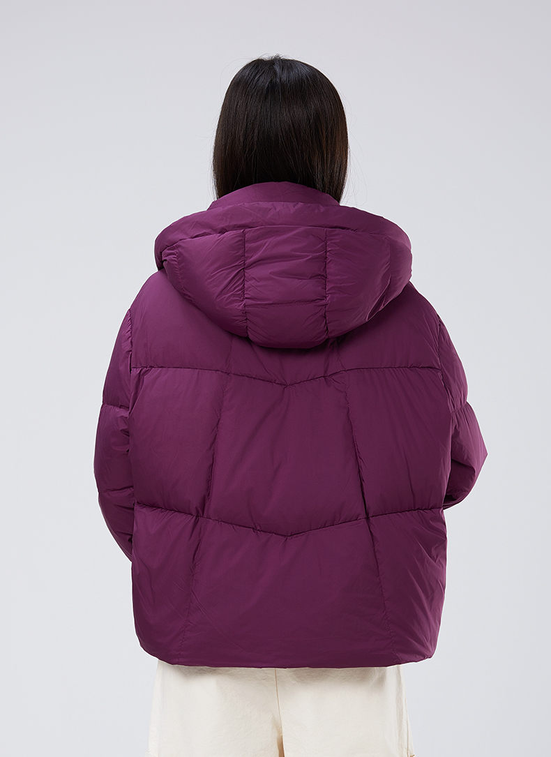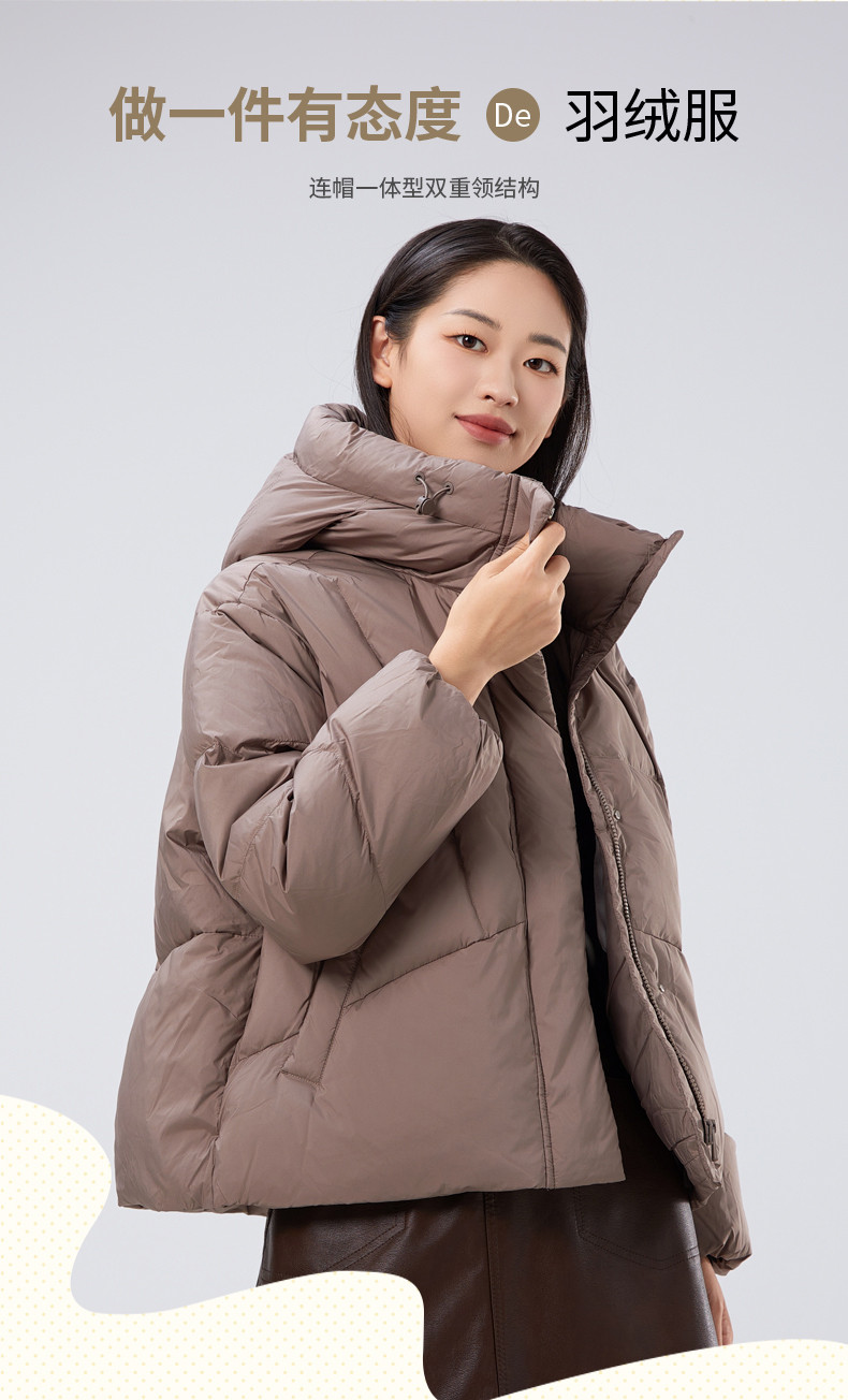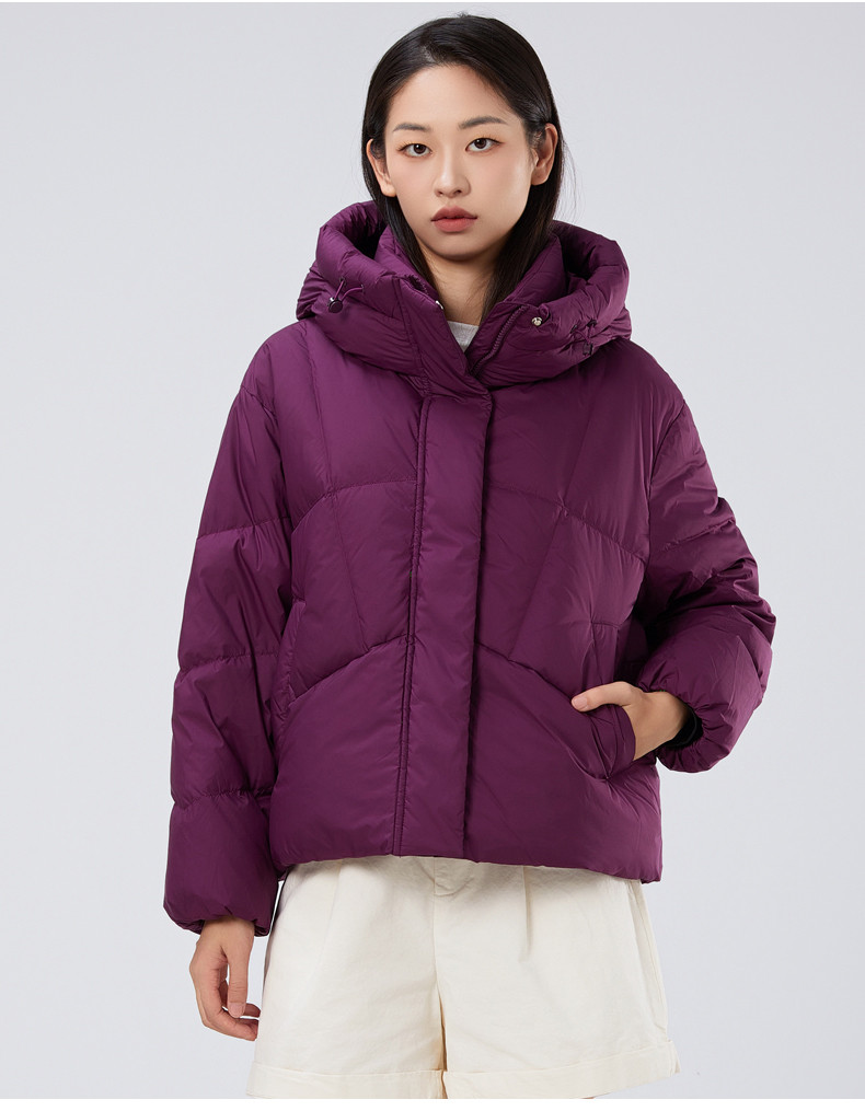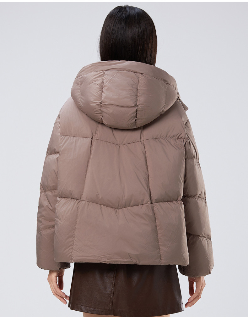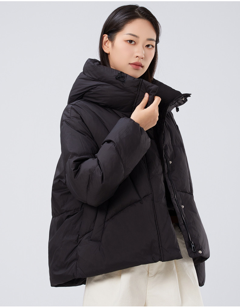 2025冬季女士短款白鸭绒纯色廓形加厚保暖连帽羽绒服9313【个调羽绒服专场】