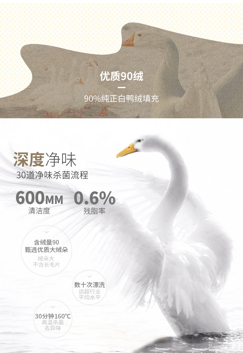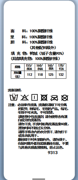 填充物:鸭绒(绒子含量90%)(局部填充物:100%聚酯纤维)