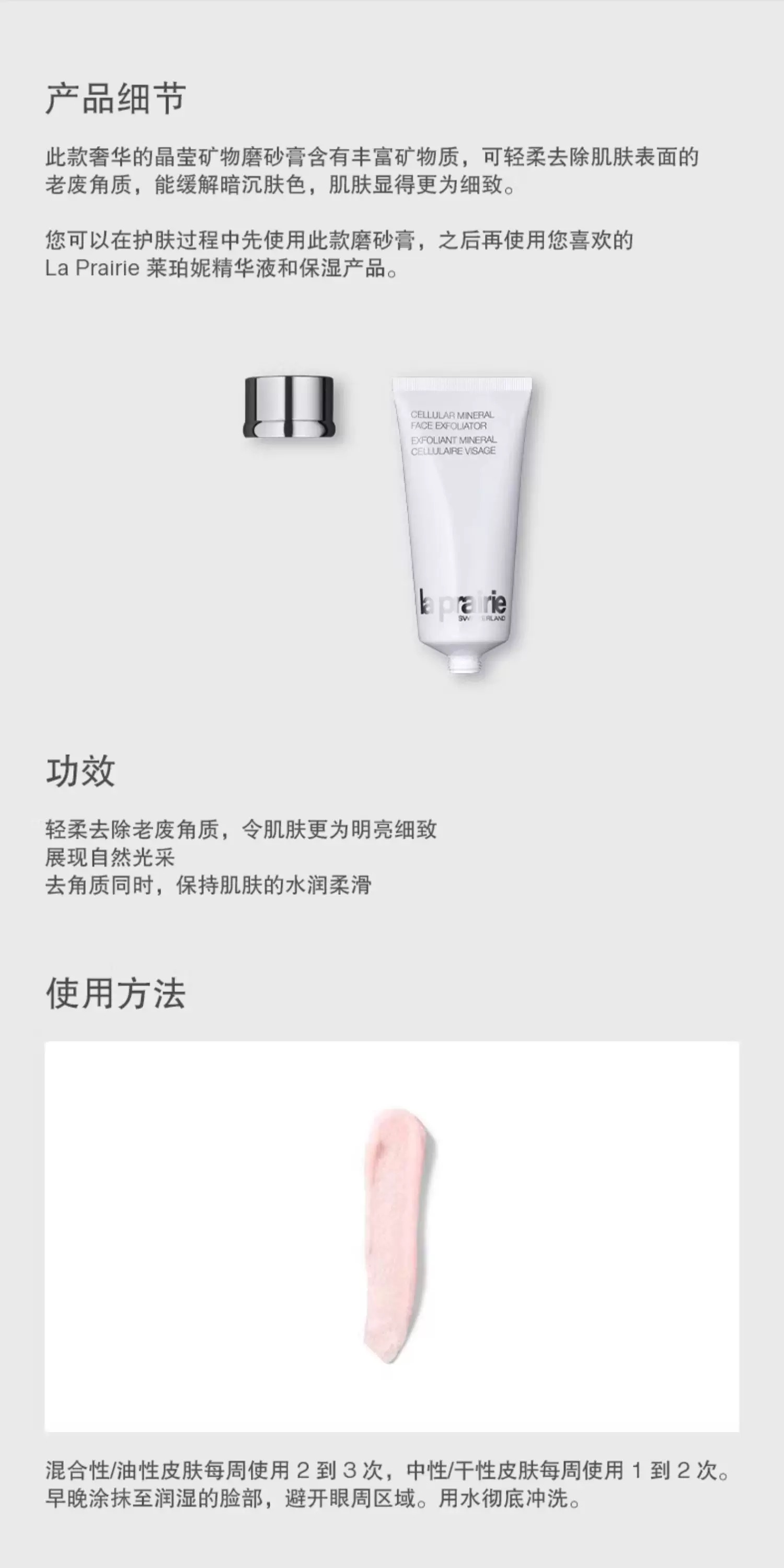 La prairie/莱珀妮LP 蓓丽 晶莹矿物磨砂膏 去角质清洁柔嫩护肤100ml