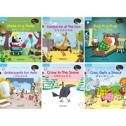 Croc Gets a Shock 鳄鱼小姐吓一跳 Crow in the Snow 乌鸦雪地大营救 Underpants for Ants 小蚂蚁穿新裤 Bug in a Rug 小小虫钻被窝 Kangaroo at the Zoo 袋鼠闯进动物园 Mole in a Hole 鼹鼠小子来打洞