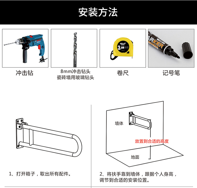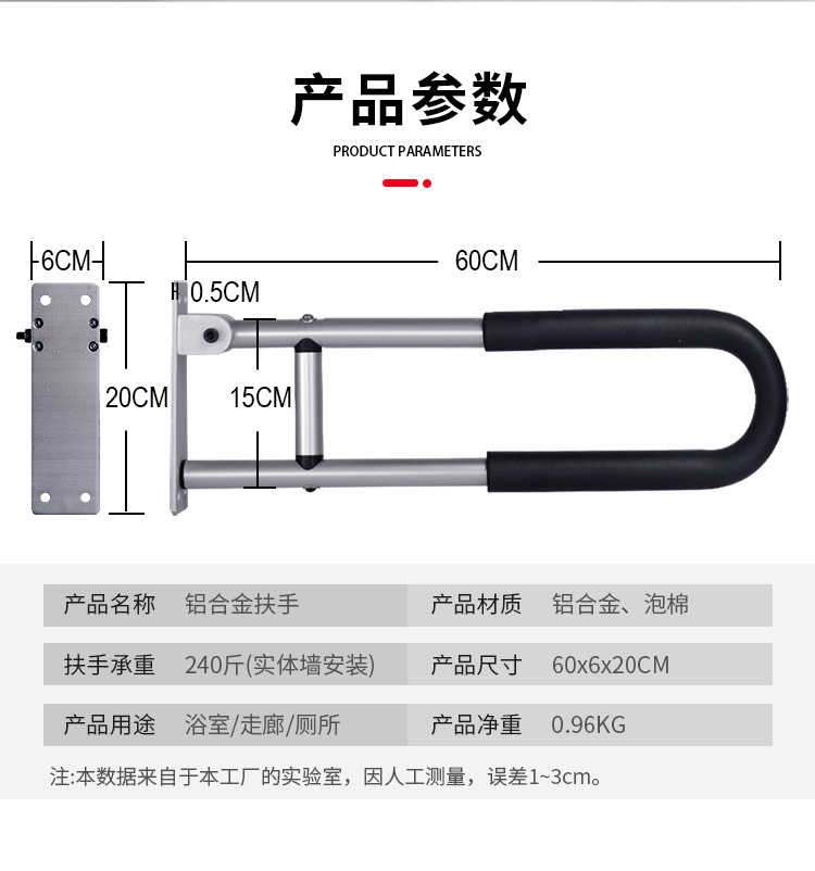 可靠YC1215 浴室马桶扶手助力器 铝合金浴室用品老人残疾辅助起身架借力扶手杆