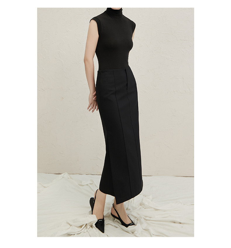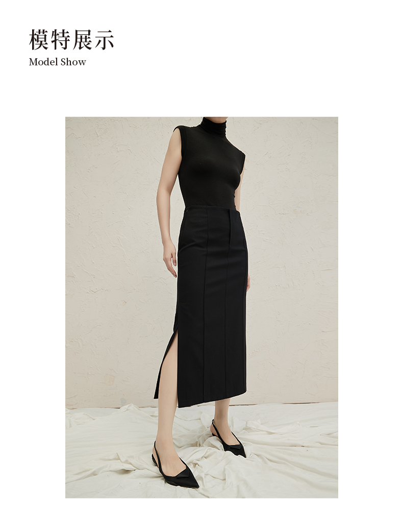 oldcolour纯色简约半身裙2022秋新款开叉自制高级感小众气质长裙