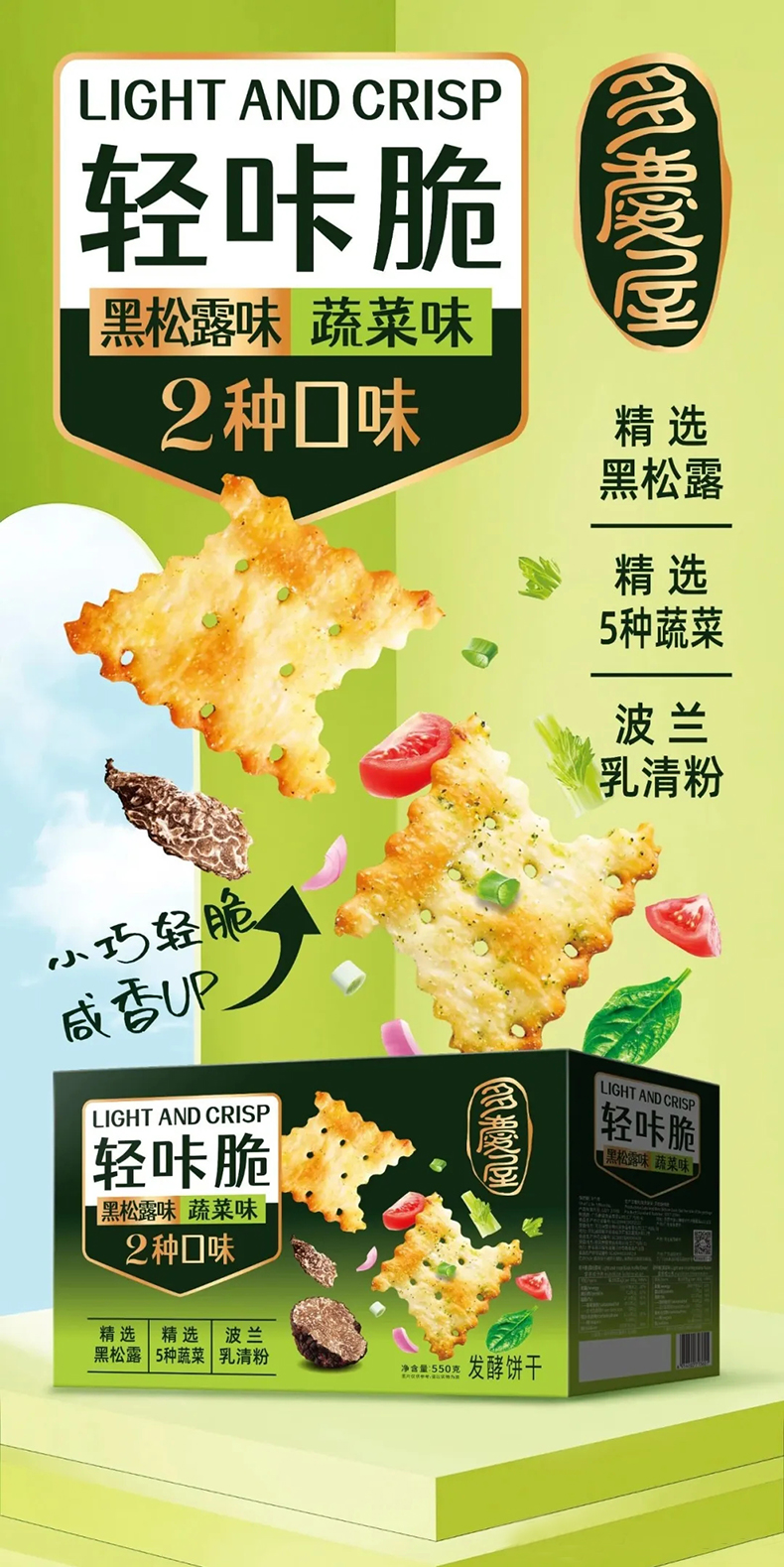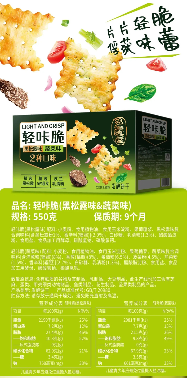 新盟食品 多庆屋-轻咔脆550g*1盒/2盒 发酵饼干 片片轻脆 休闲零食 48小时发货