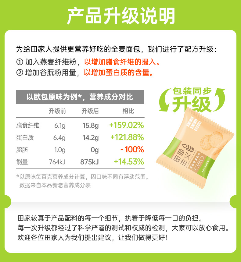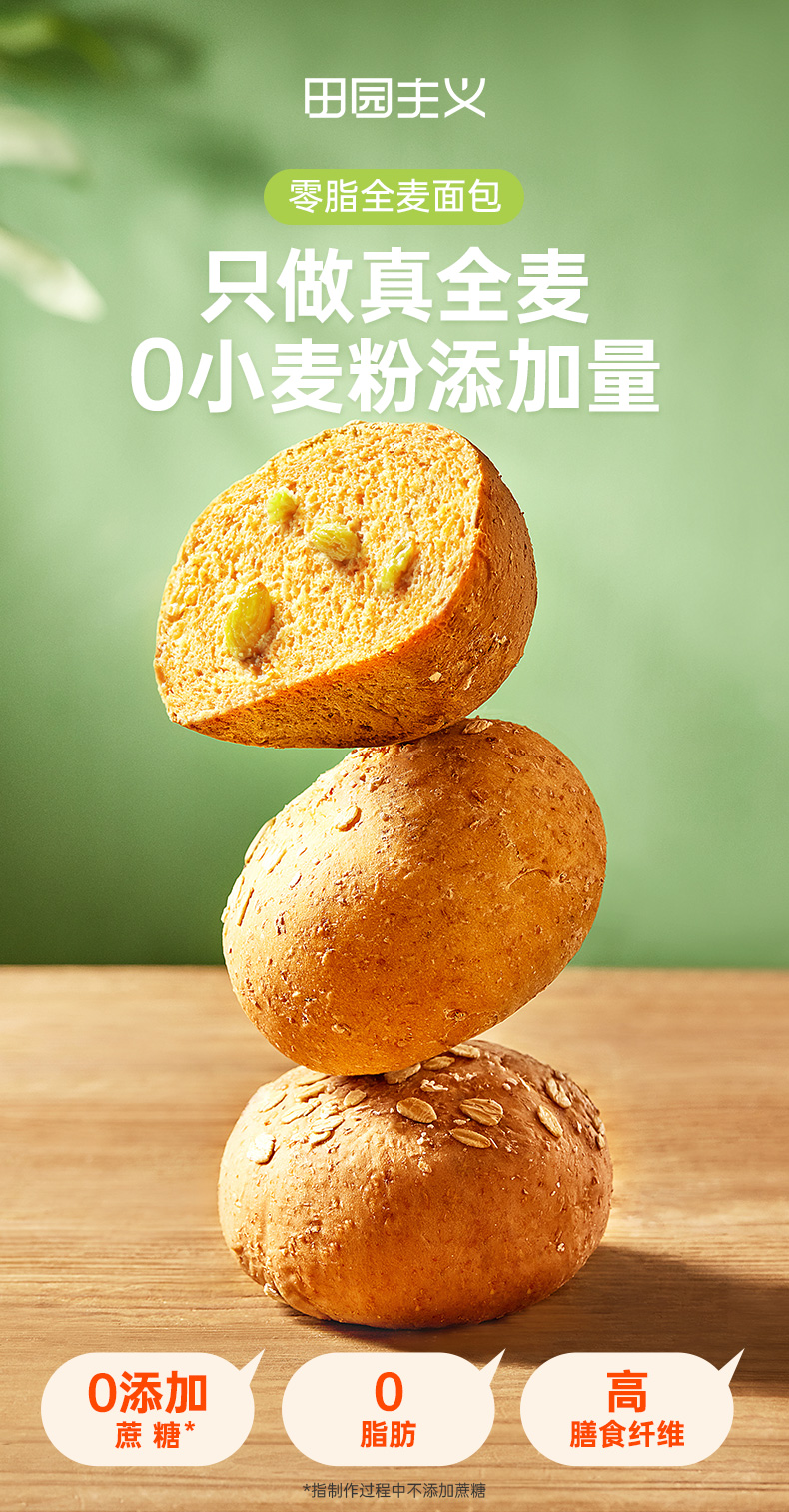 无蔗糖 全麦面包85g*12袋 0脂肪 早餐 健康 零食 代餐 饱腹 粗粮 速食 欧包 田园主义
