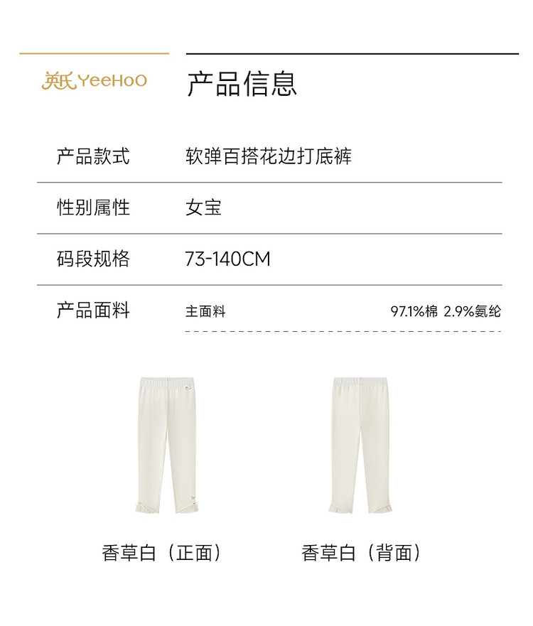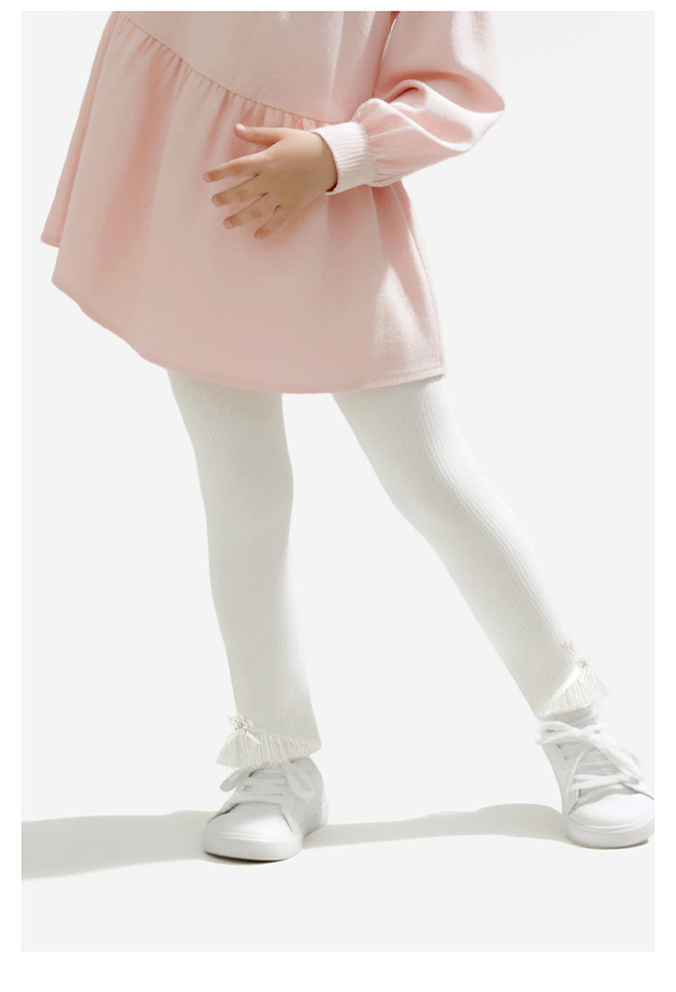 英氏女童裤子修身长裤针织白色蕾丝花边打底裤新款YRKDJ1S054A