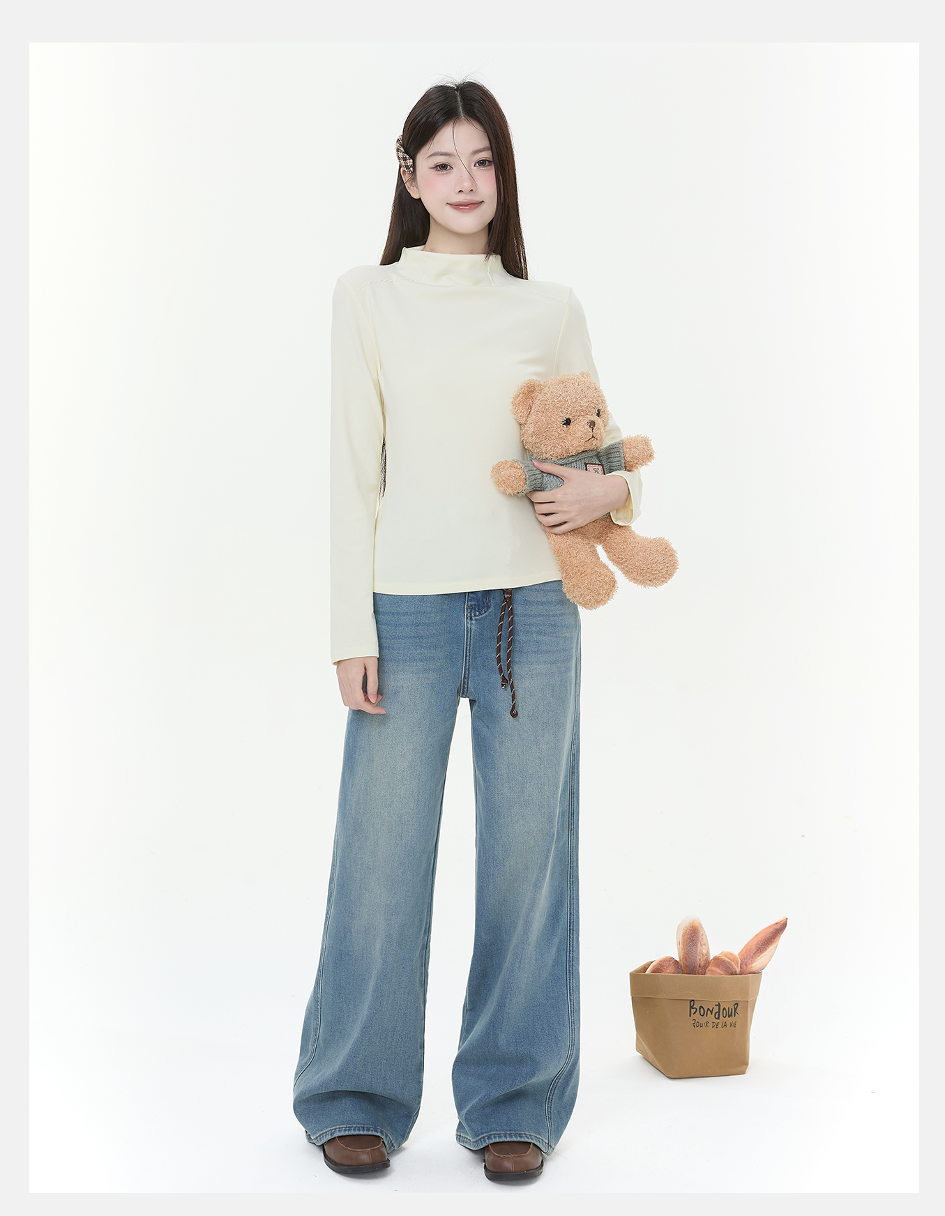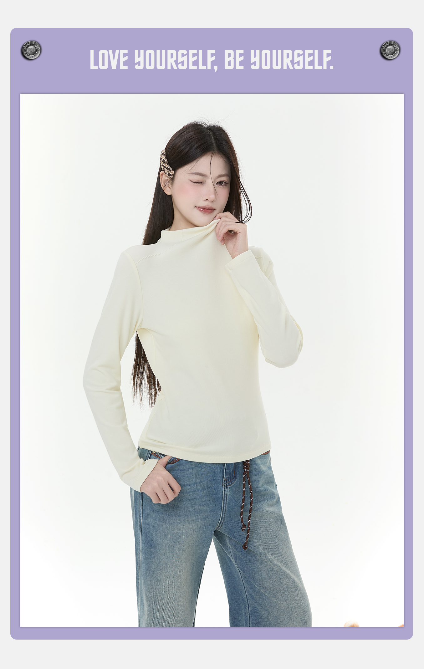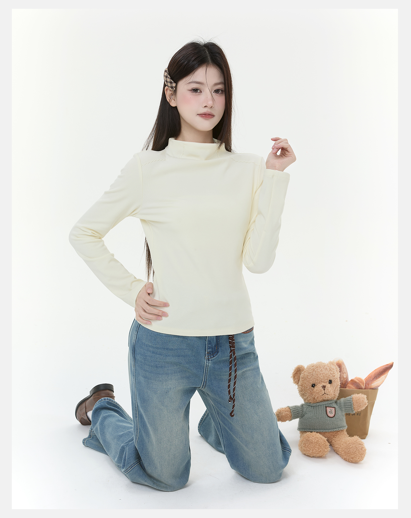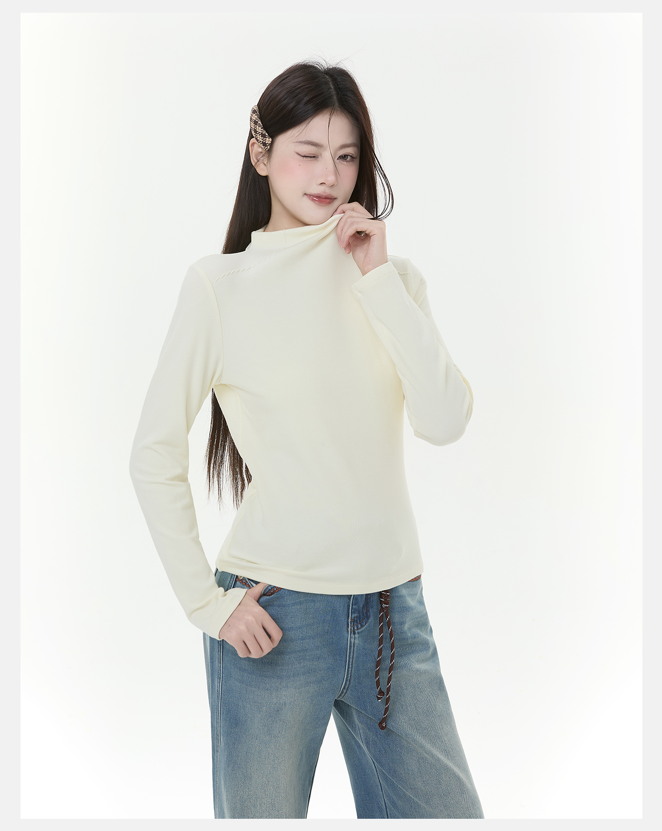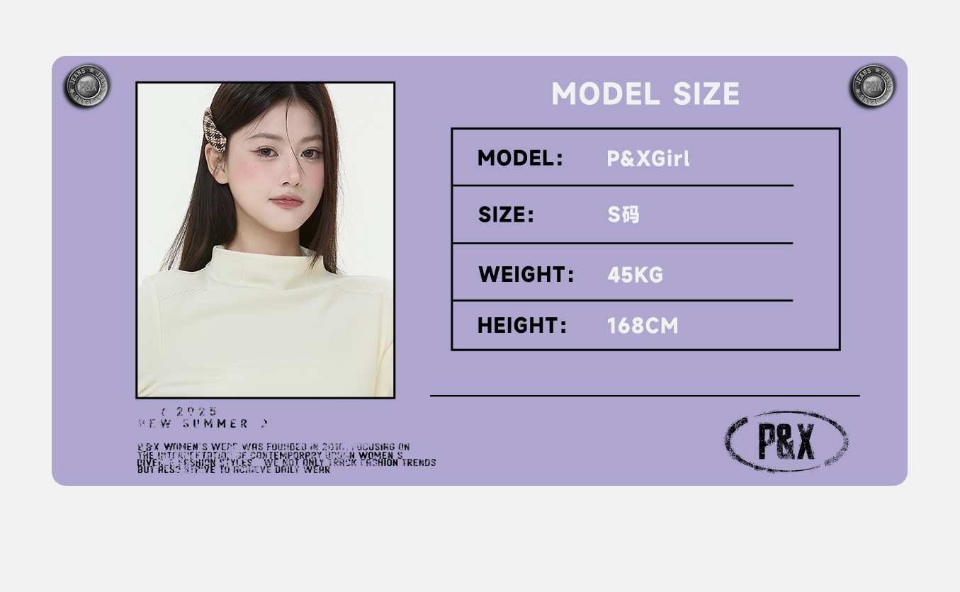 P&X设计师女装2025冬季半高领T恤保暖修身打底T恤 825402094 浅黄