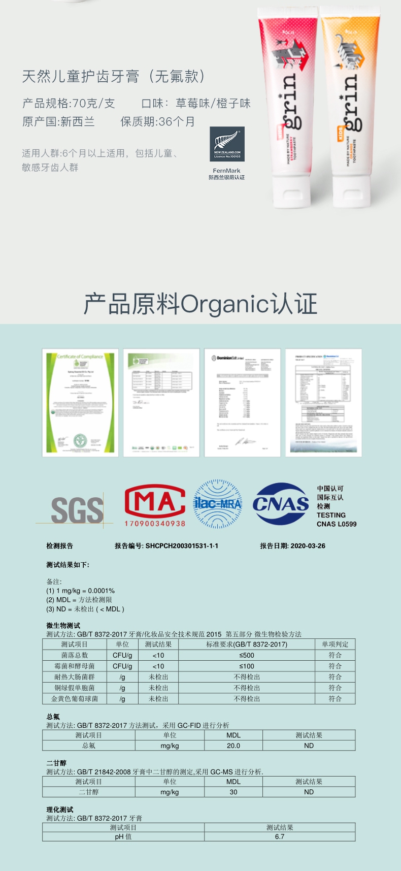 无氟6月+ | Grin天然儿童护齿牙膏水果味 70g