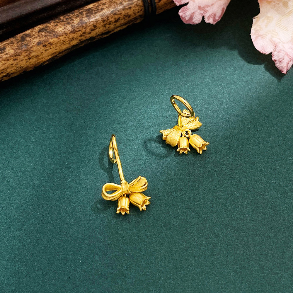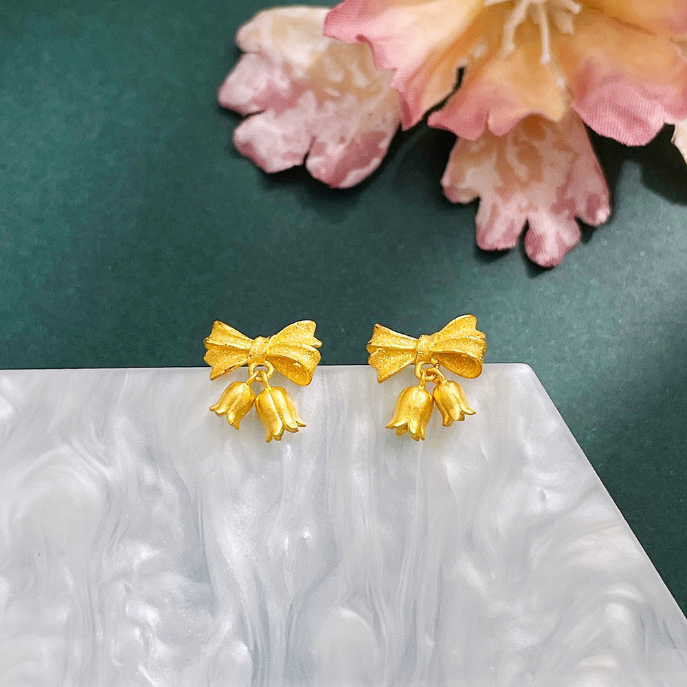 【限时克减150元】足金999.9 #在逃公主 【精品】万足镂空甜美少女心铃兰花蝴蝶结耳饰耳钉(AWWES00222)(预售产品下单后不退款不退货不换货不补差价