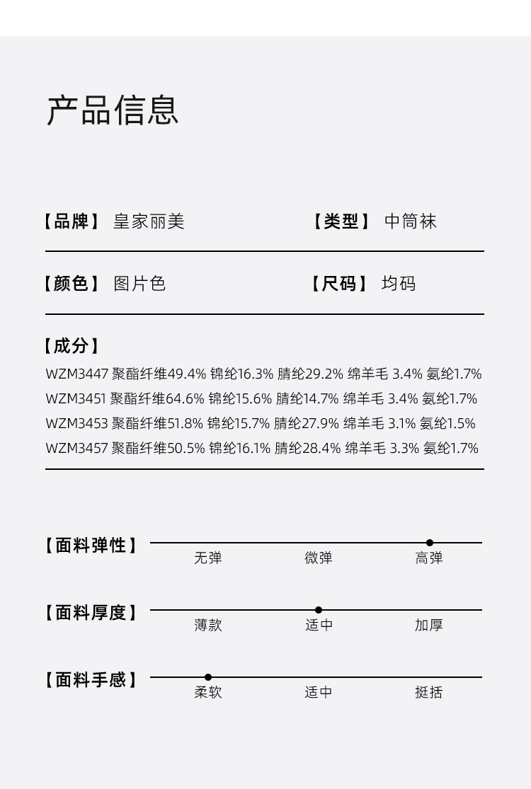 【42元5双,下单拍5】秋冬春新品羊毛袜女袜柔软舒适棉袜女中筒袜WZM3436
