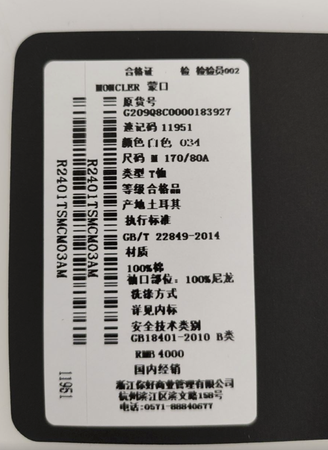 【清仓破价超惠秒】Moncler 盟可睐 男士 经典伸缩收腰/袖口款 全棉短袖T恤 11951