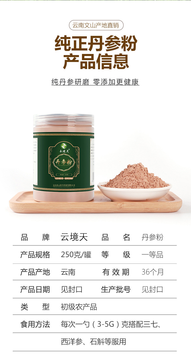 【买三送一】云境天云南丹参粉 超细粉泡茶 丹参茶饮 250g