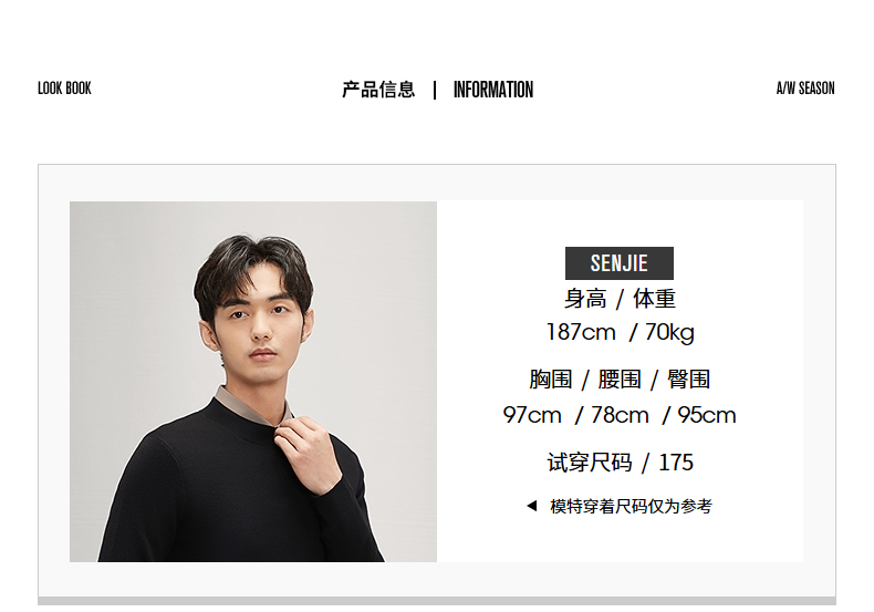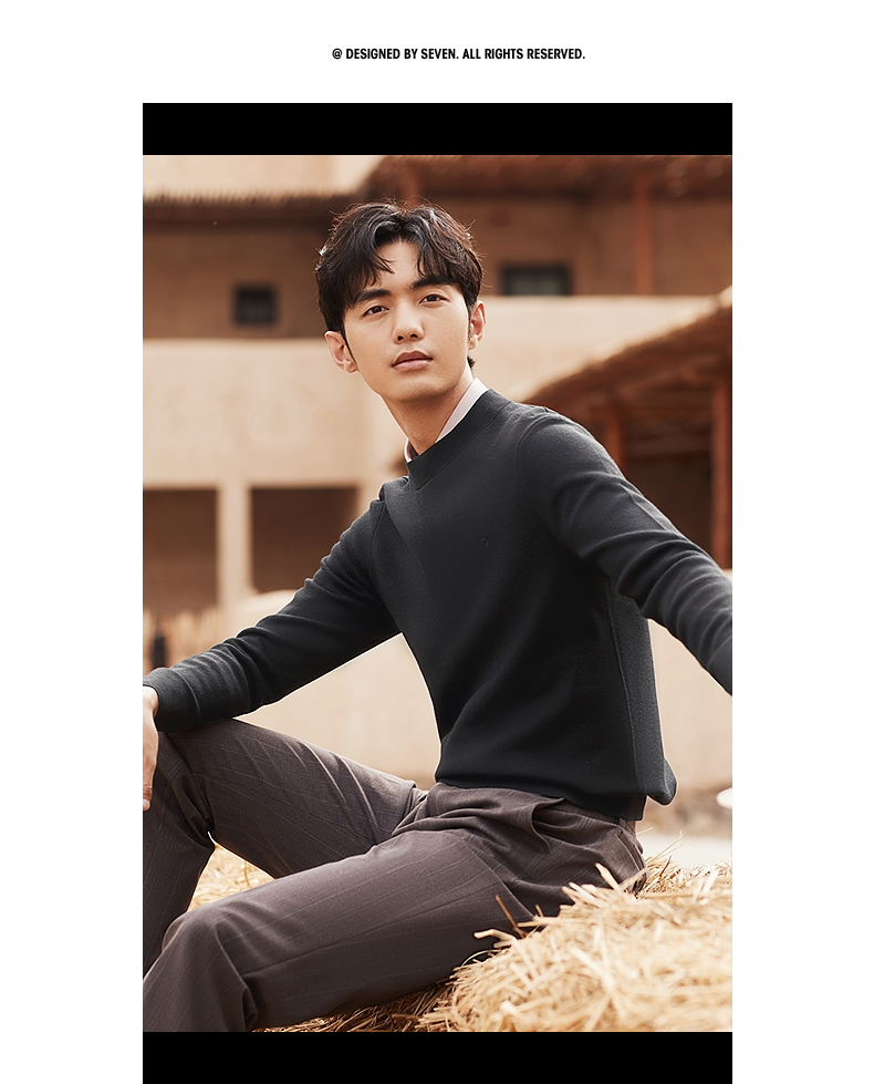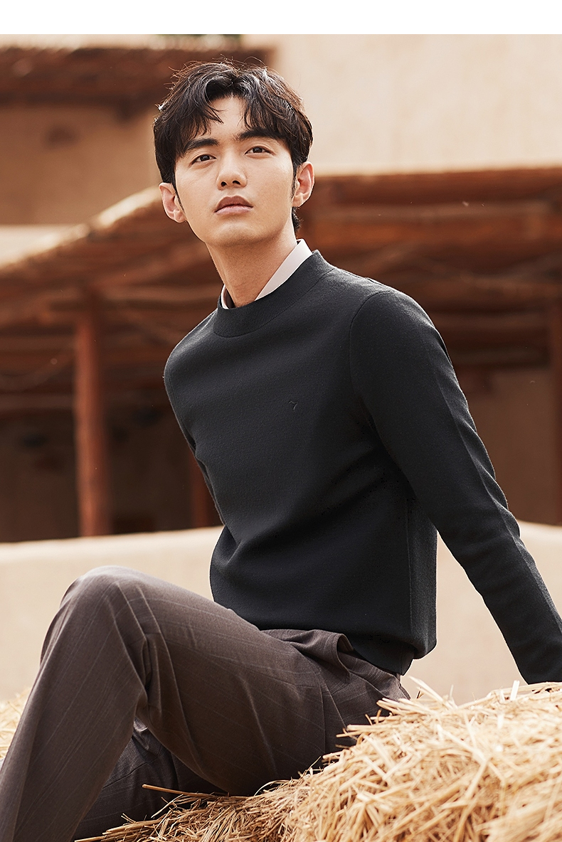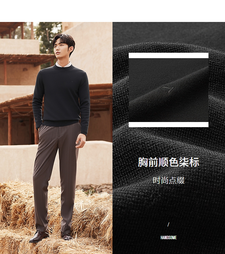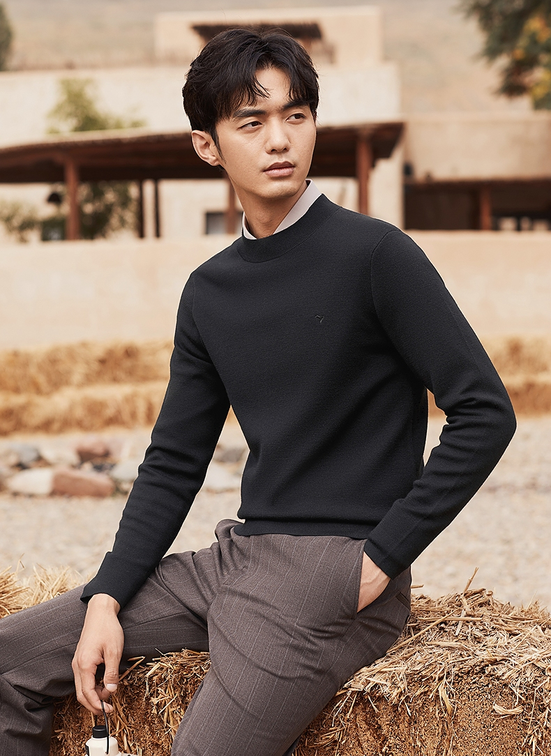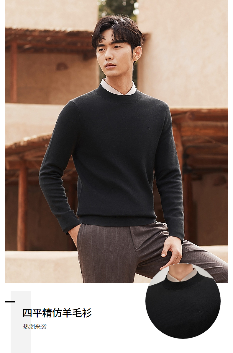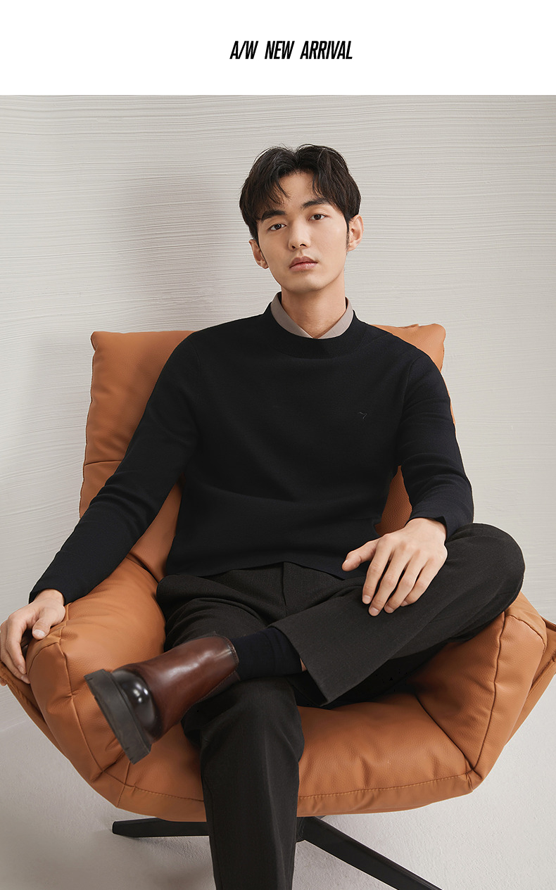 柒牌半高领毛衣男2024秋冬新款保暖舒适时尚休闲中青年打底羊毛衫 127Y70540