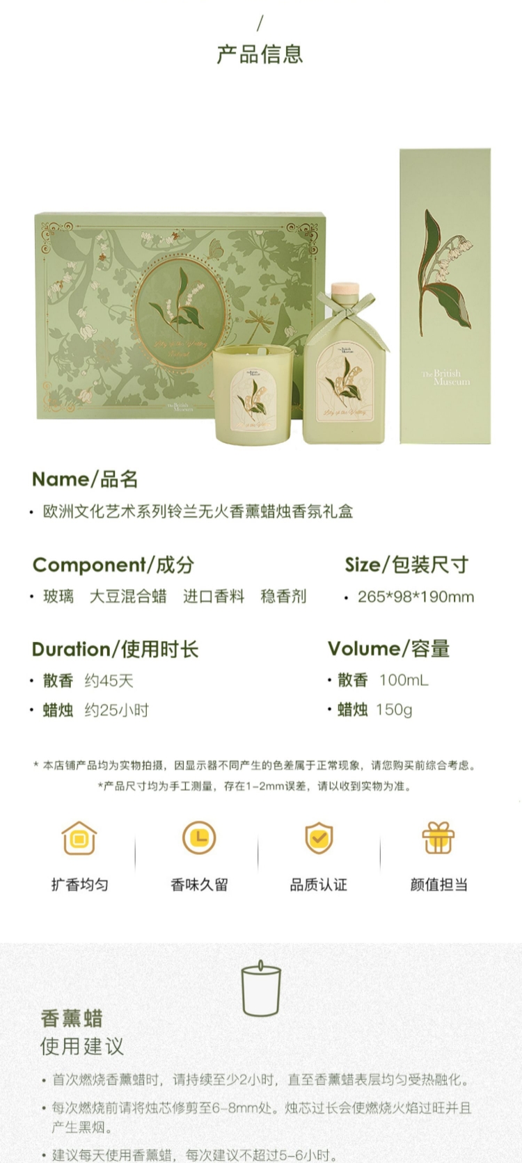 大英博物馆欧洲文化艺术系列铃兰 二十四节气【立夏】无火香薰蜡烛香氛礼盒