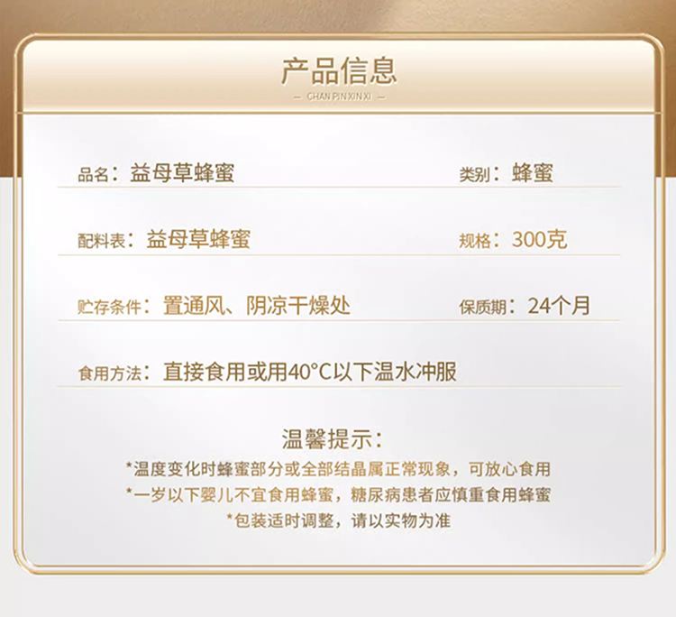 同仁堂益母草蜂蜜300克/瓶-800克/瓶