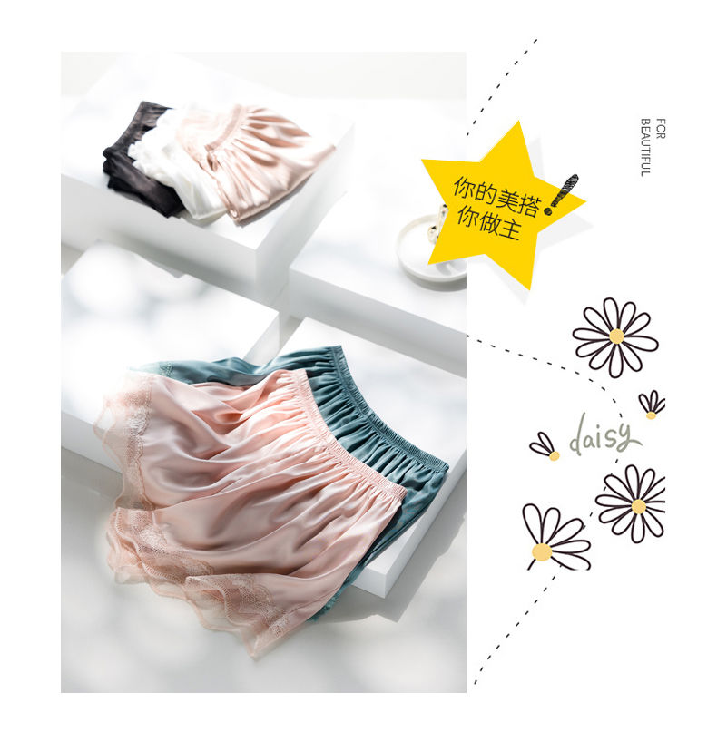 黛唯梵安全裤女防走光夏薄款可外穿蕾丝缎面jk不卷边宽松居家打底裤短裤七夕情人节