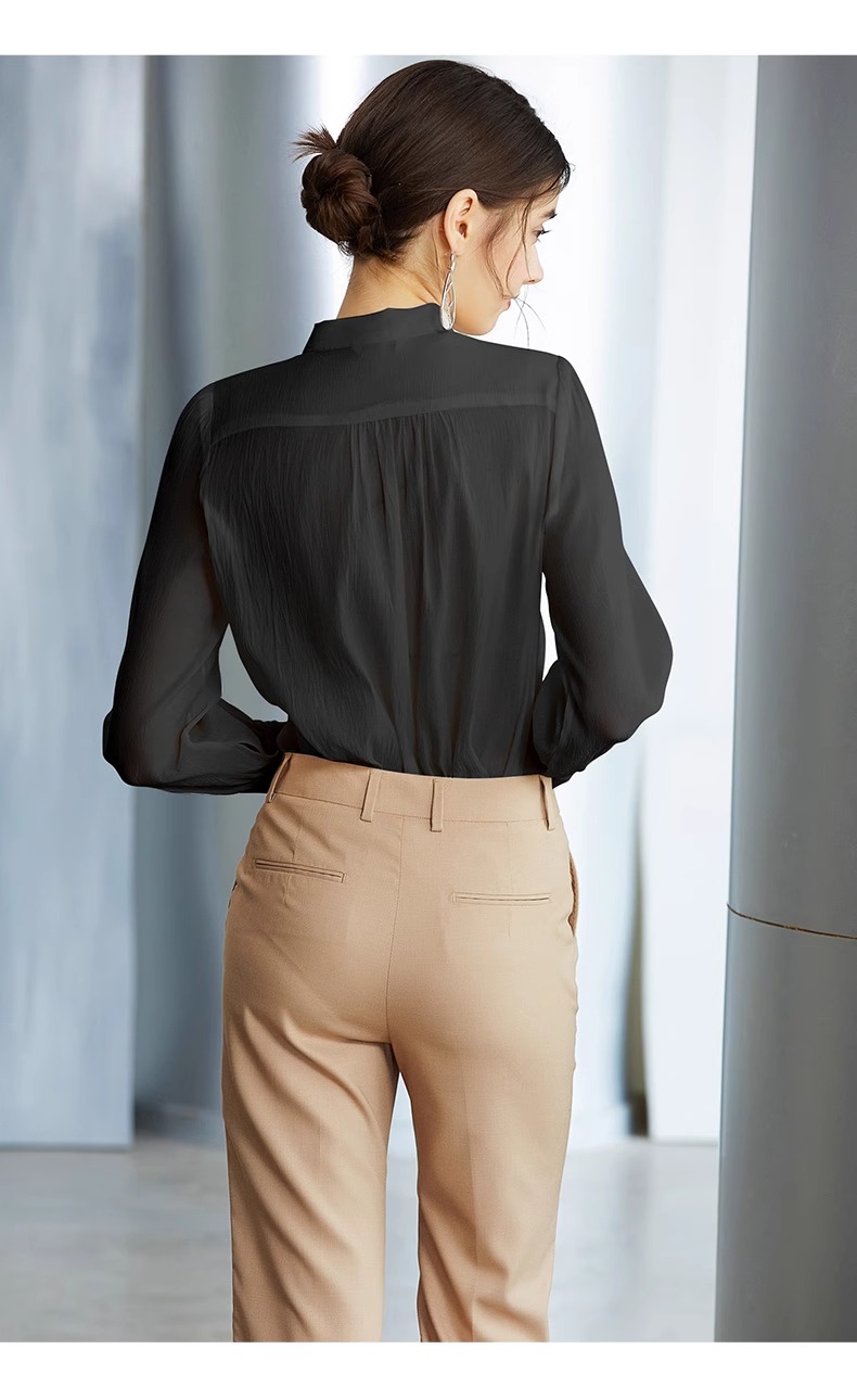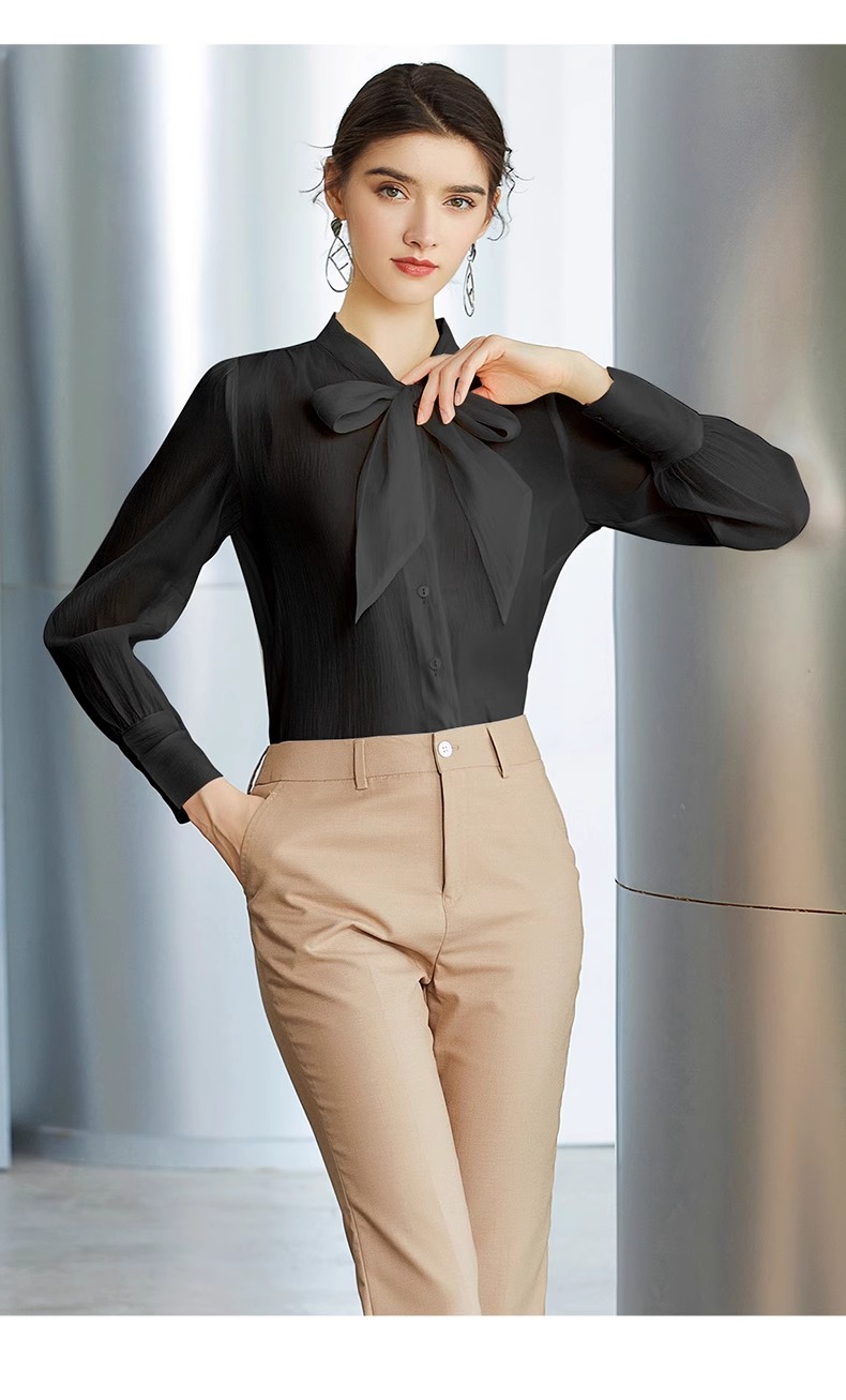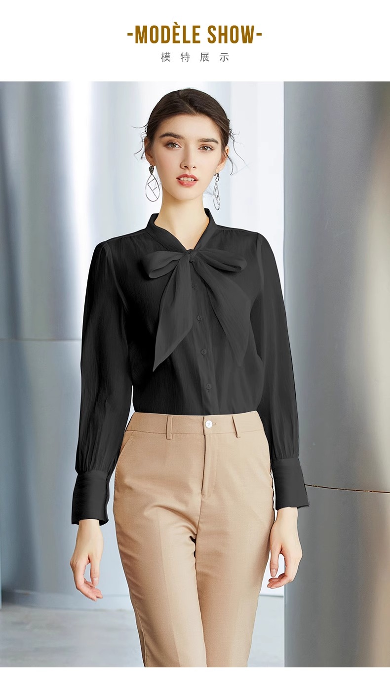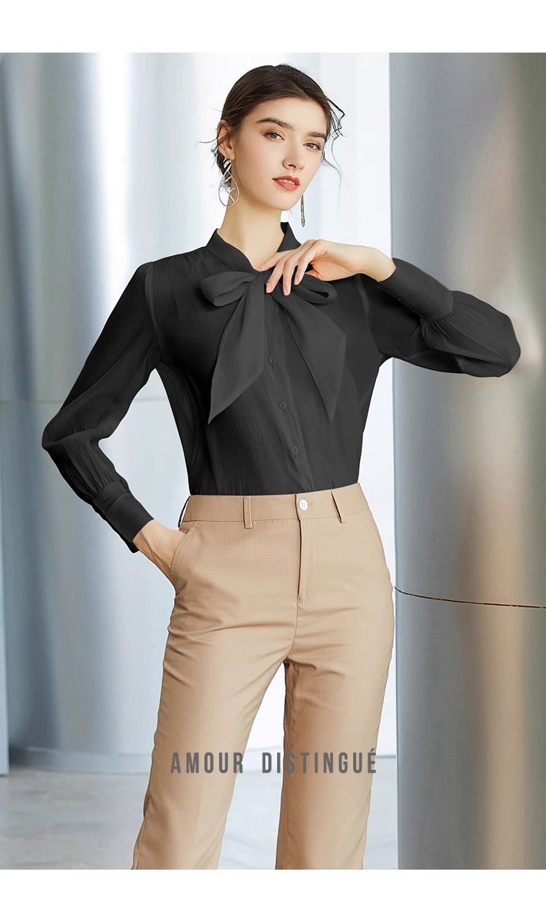 IWY/高级感黑色衬衫女蝴蝶结上衣春季长袖显瘦衬衣职场时尚通勤女装B137