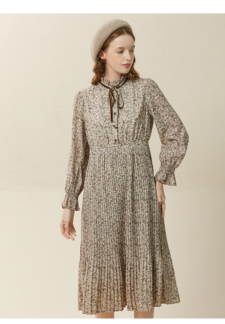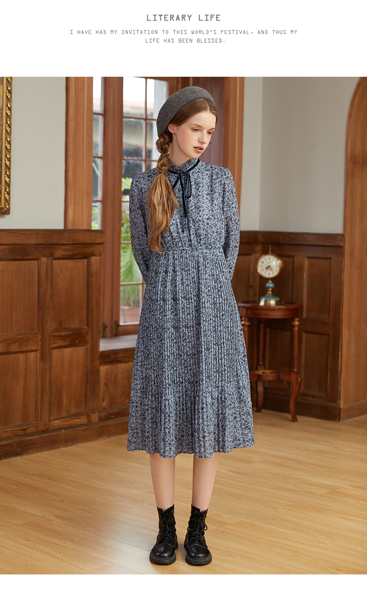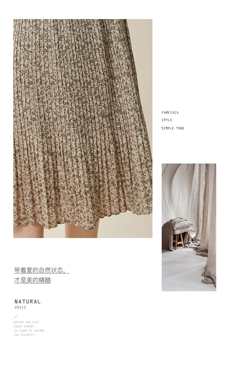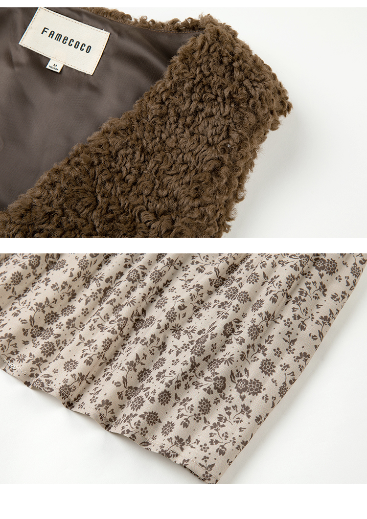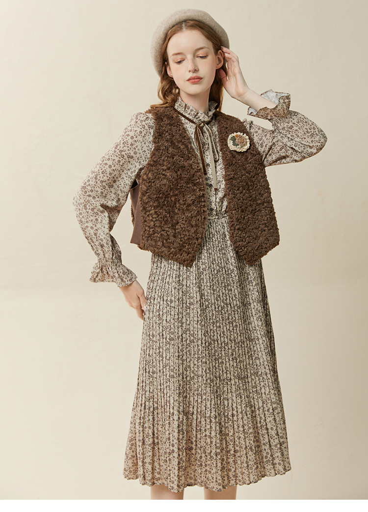 Famecoco范可儿圈圈毛马甲配连衣裙两件套印花雪纺裙套装F228EA002