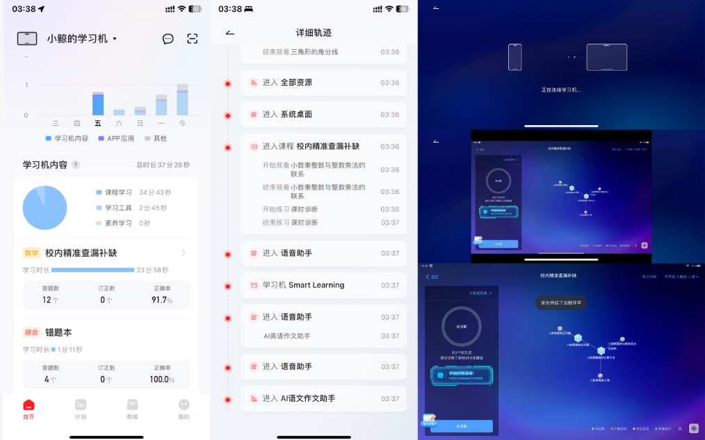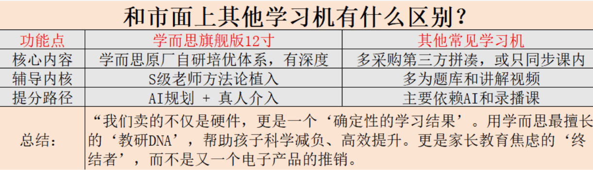1.差异化:大屏沉浸式学习体验 + 内容深度绑定学而思培优资源