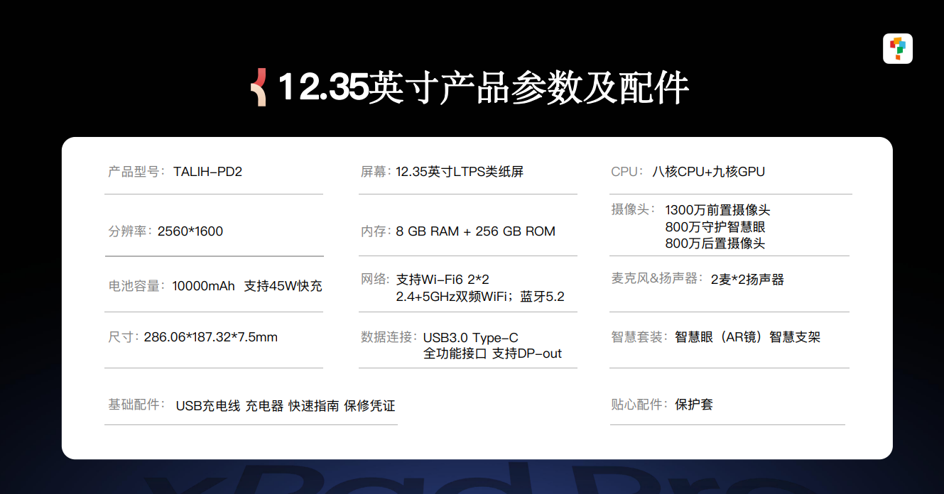 2.屏幕:12.35英寸未来纸润眼屏,AG防眩光,五大莱茵护眼认证30重护眼功能