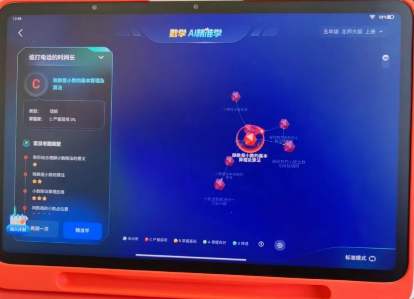 •AI精准学:最核心的功能,通过做几道题快速帮孩子找到薄弱项,并且点对点的学习提升。