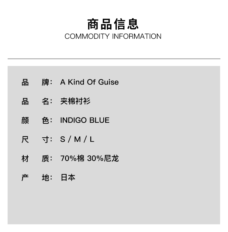 A KIND OF GUISE x nanamica Insulated shirt日本制蓝染夹棉衬衫
