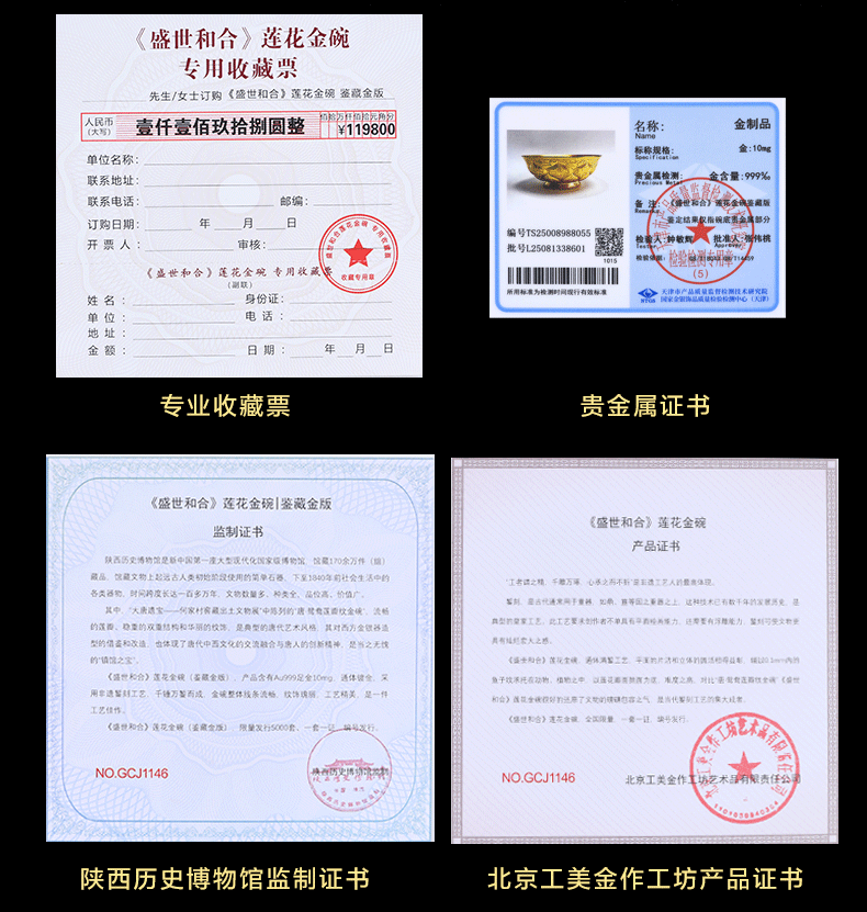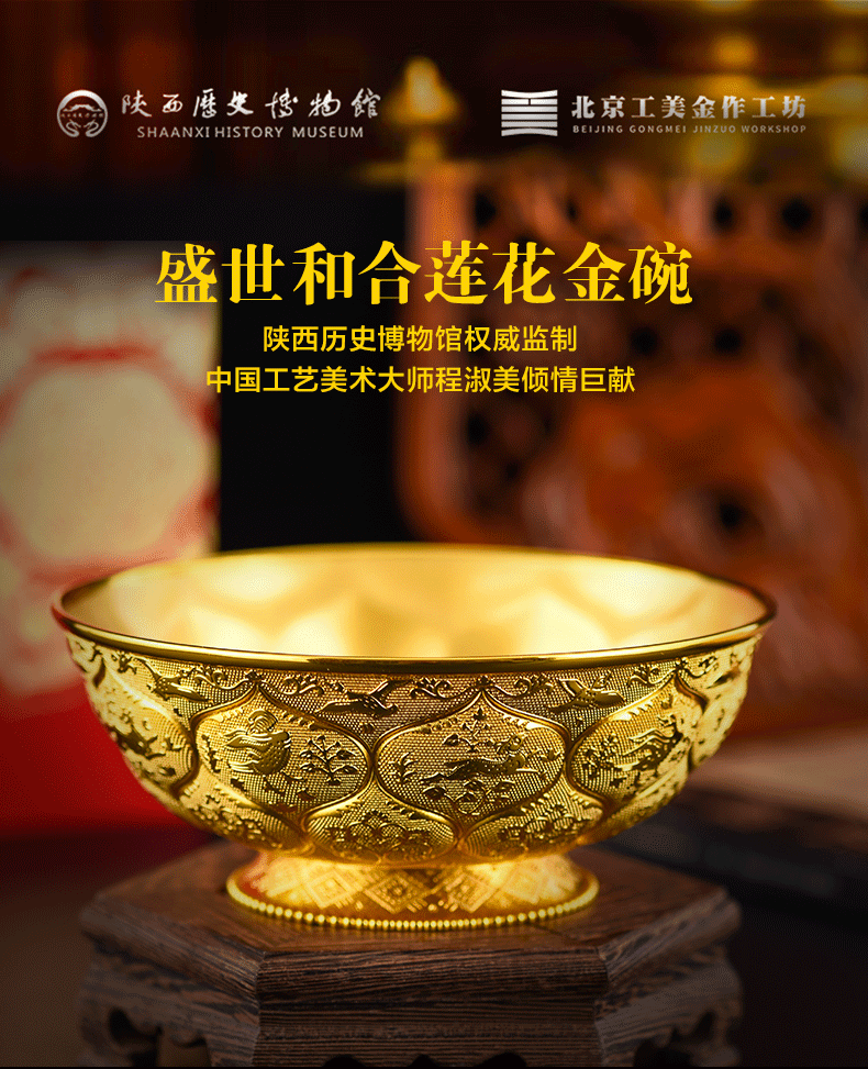 热卖中!!【陕西历史博物馆官方监制】《盛世和合》大唐莲花金碗 含10mg999足金 国大师程淑美创作
