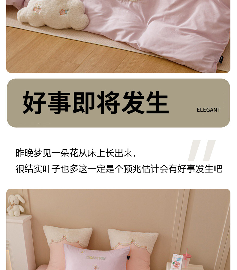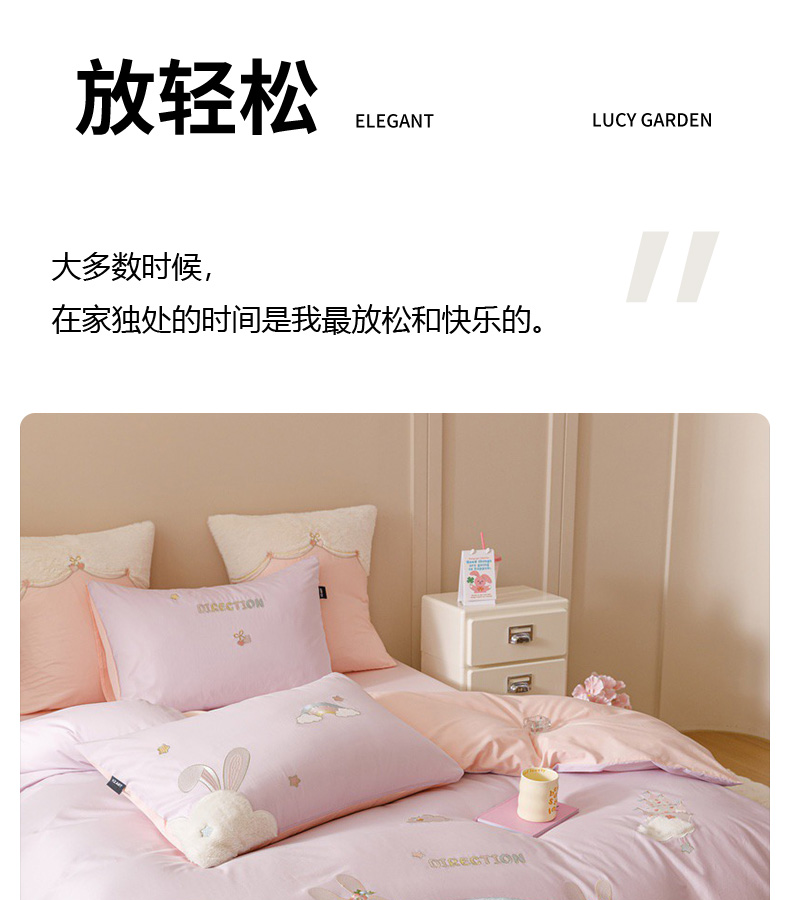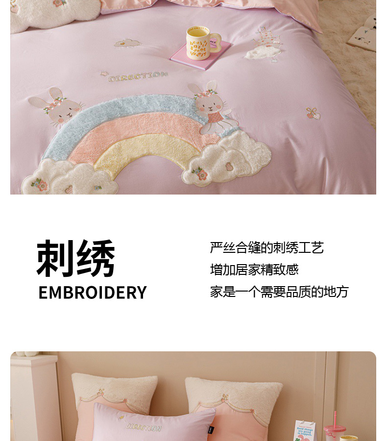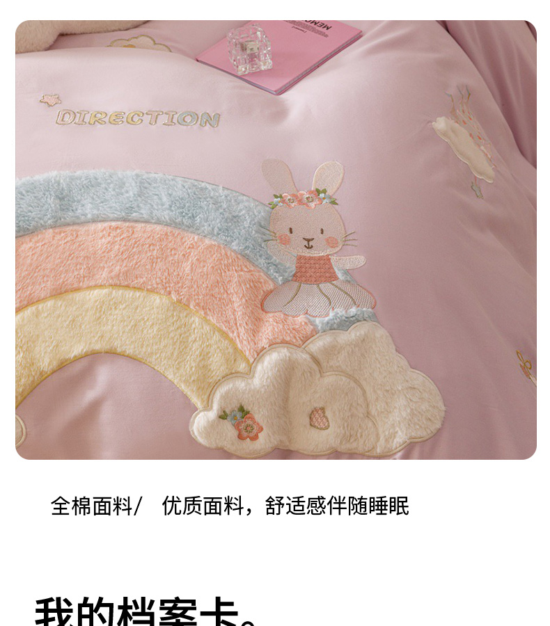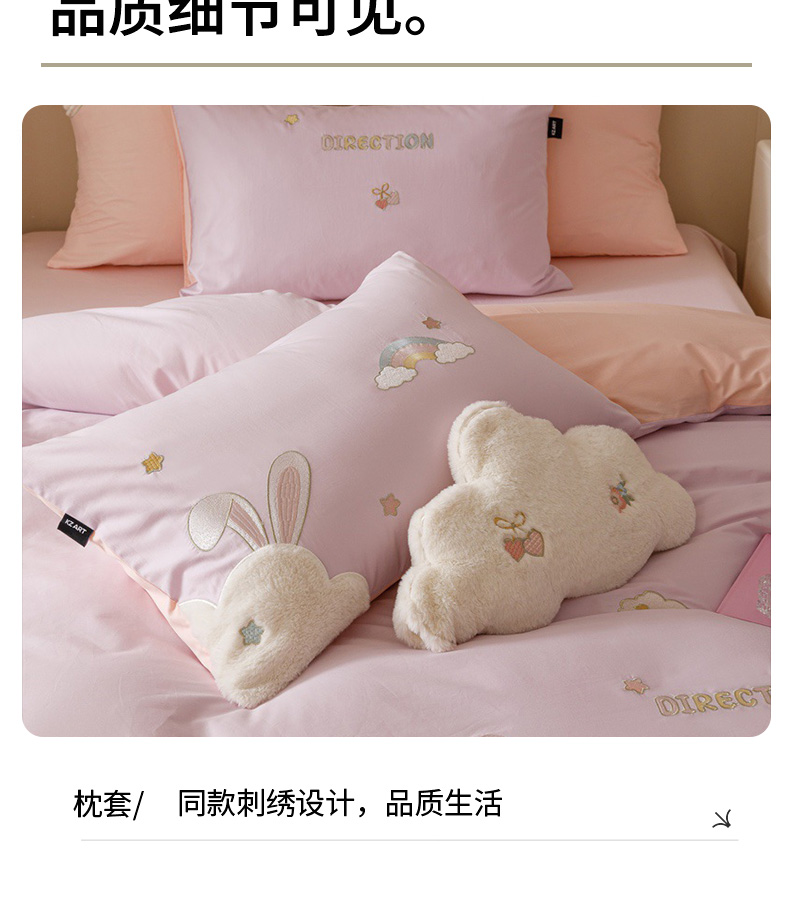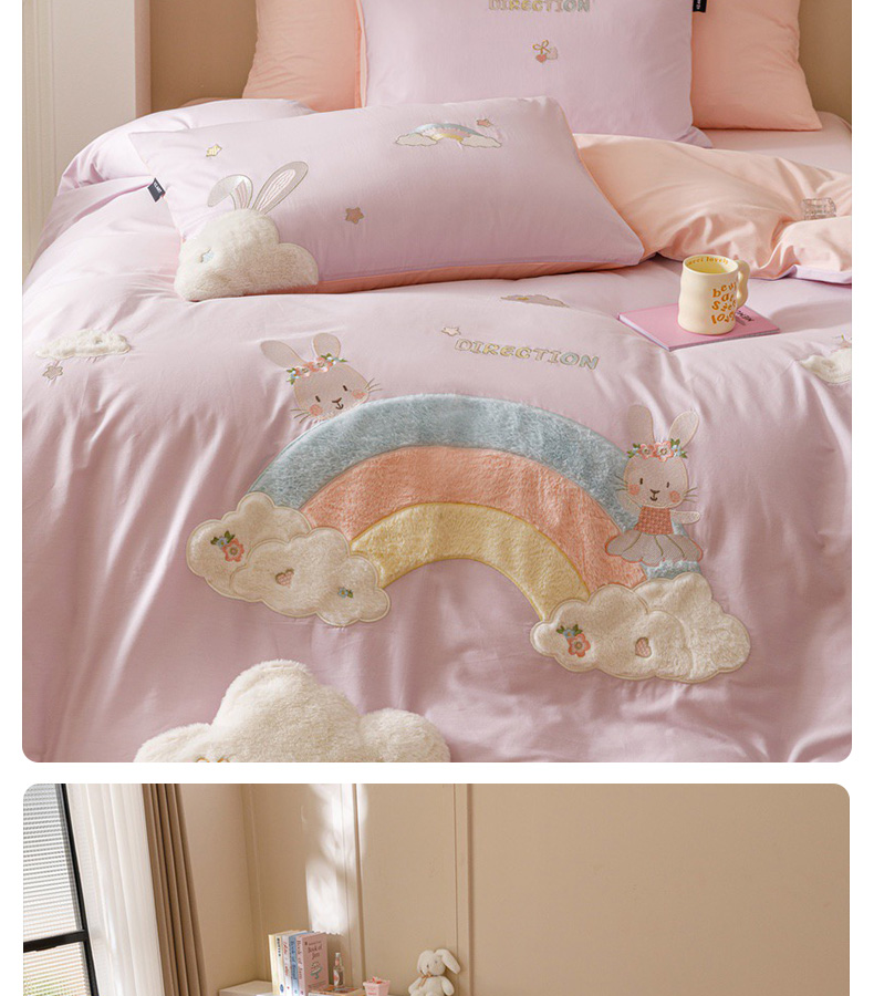 全棉卡通奶油风刺绣彩虹奶兔四件套 四季可用纯棉马卡龙套件