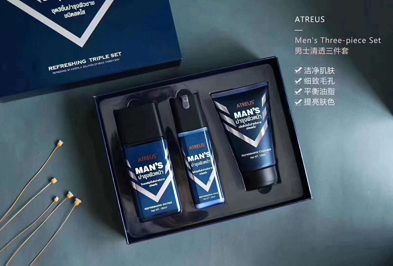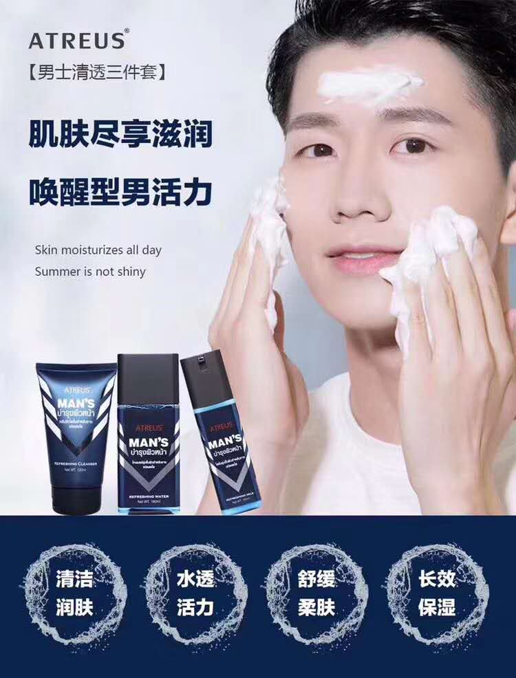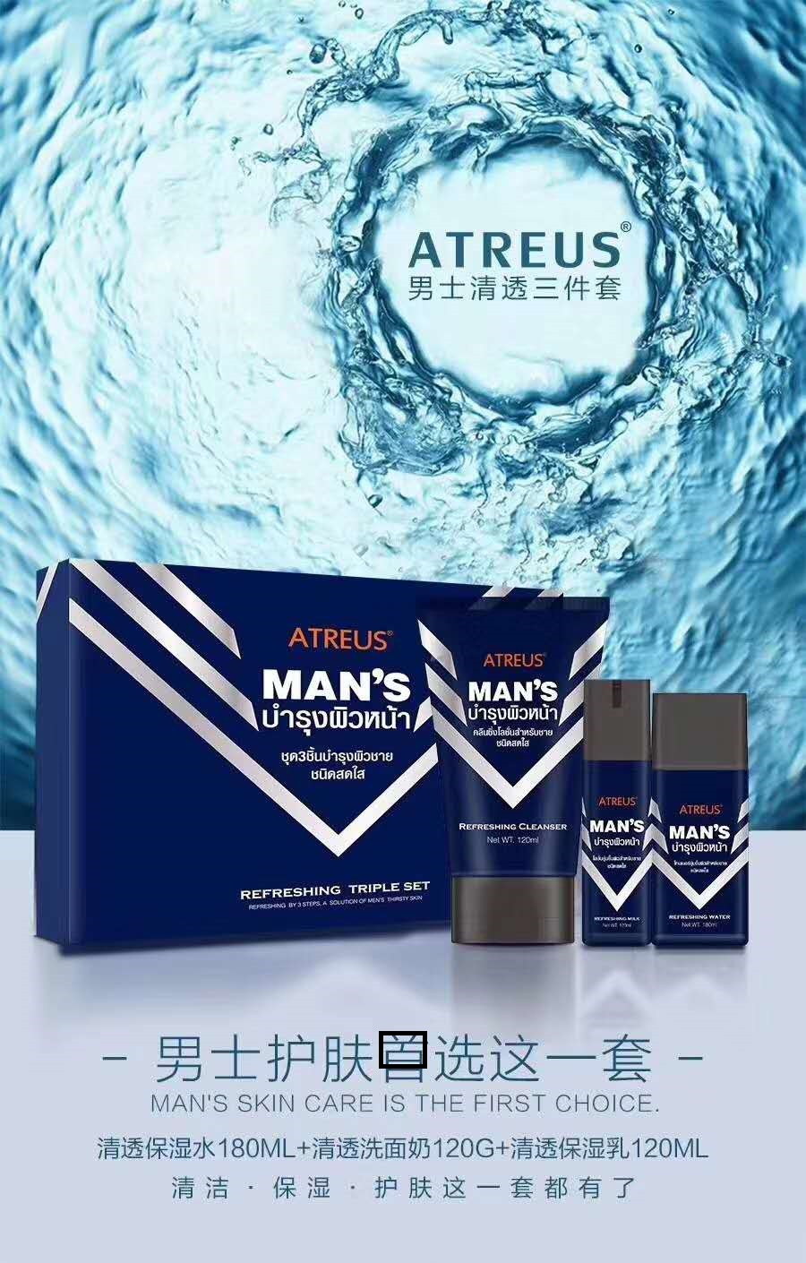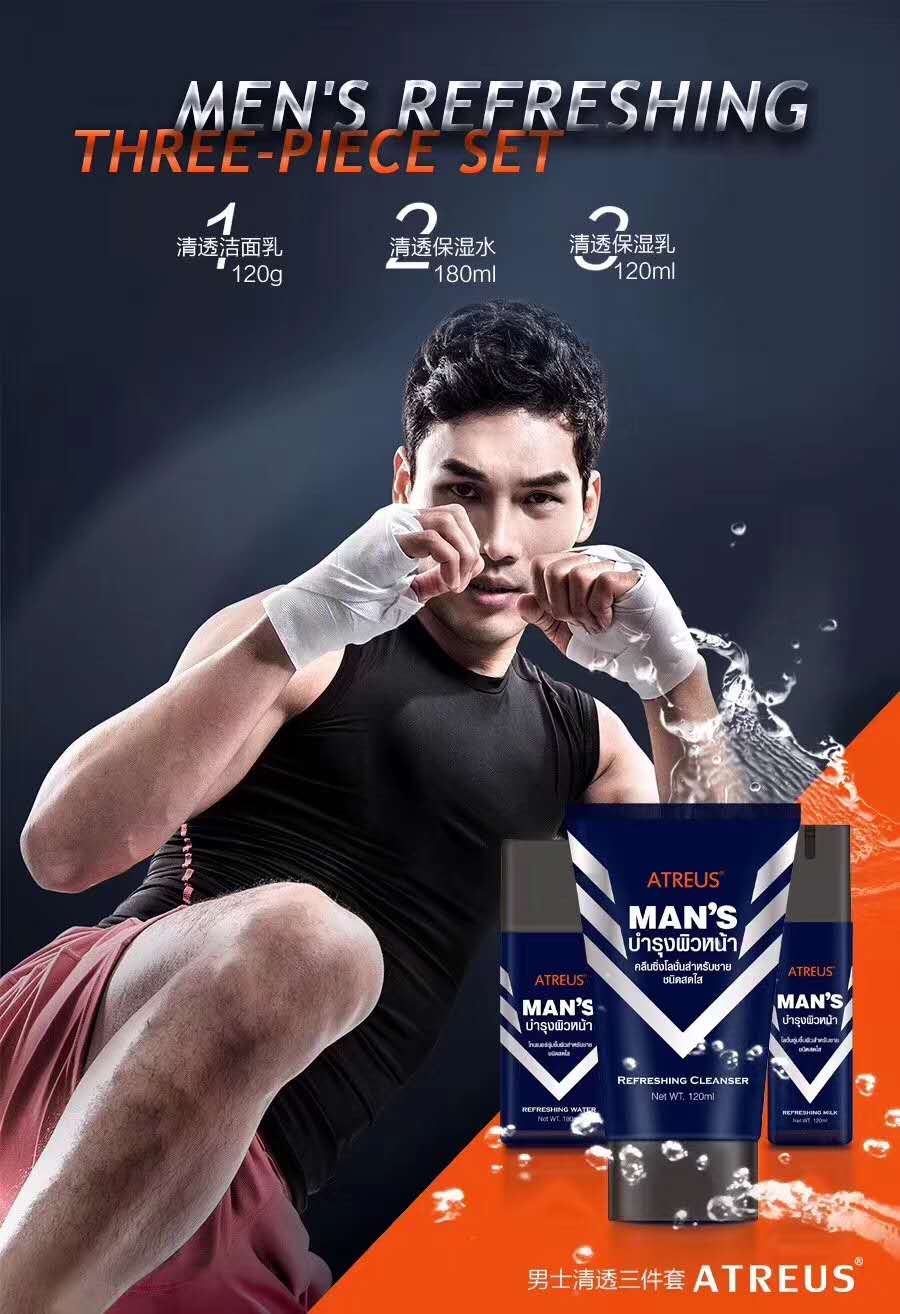 MMT 泰国ATREUS男士清透3件套装洁面乳120g+保湿水180ml+保湿乳120ml