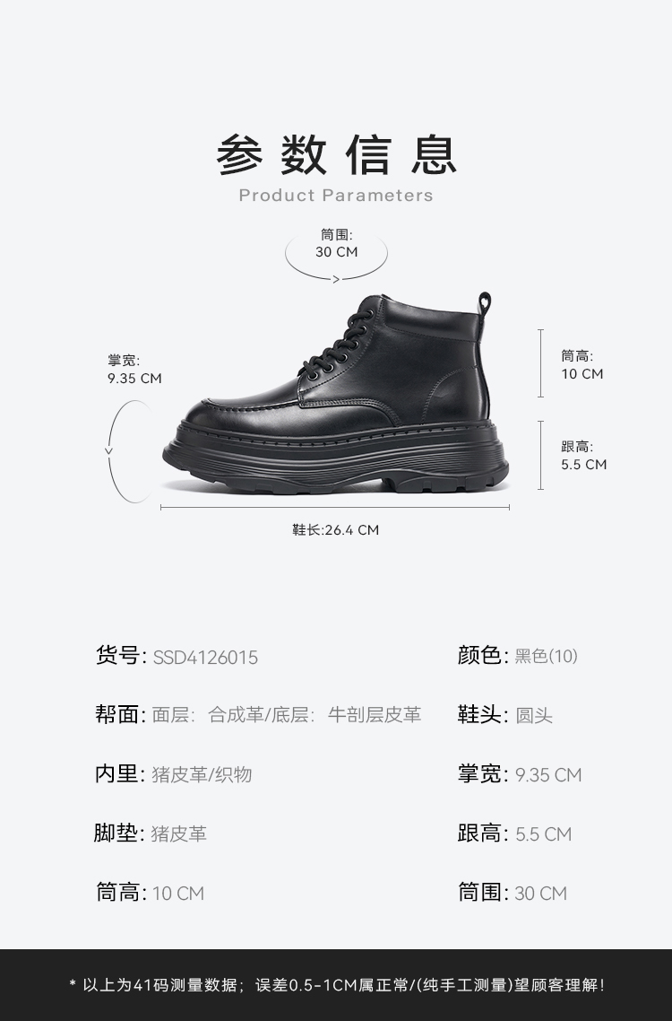 星期六男士休闲厚底增高短靴SSD4126015