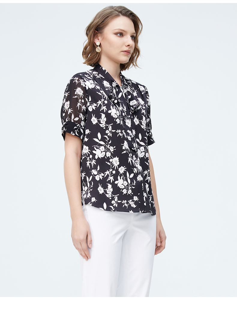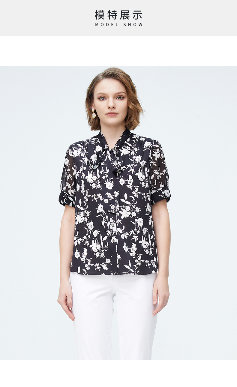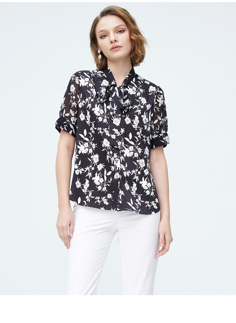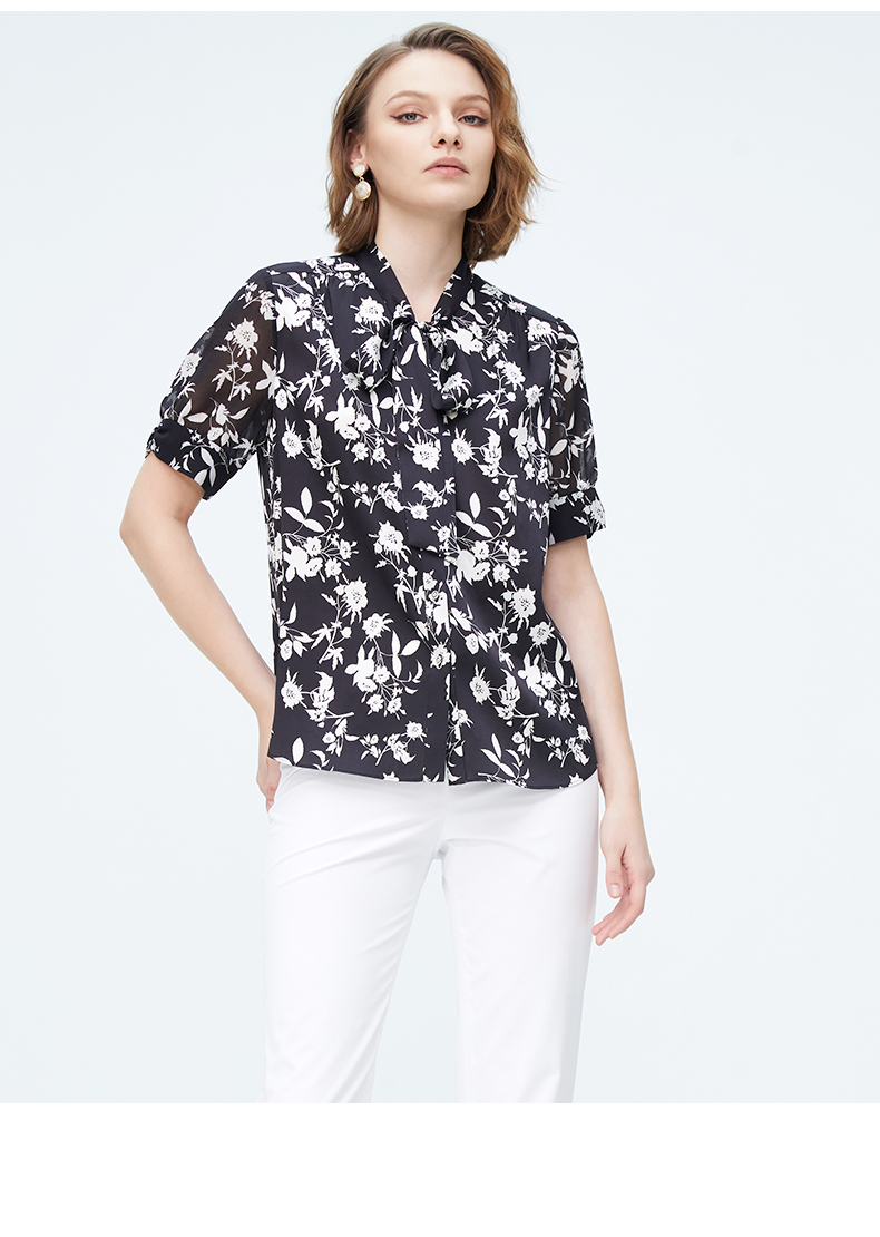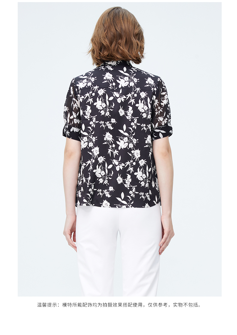 皮尔卡丹女装春季新款简约淑女碎花衬衫P4227A4011B3
