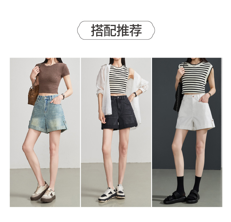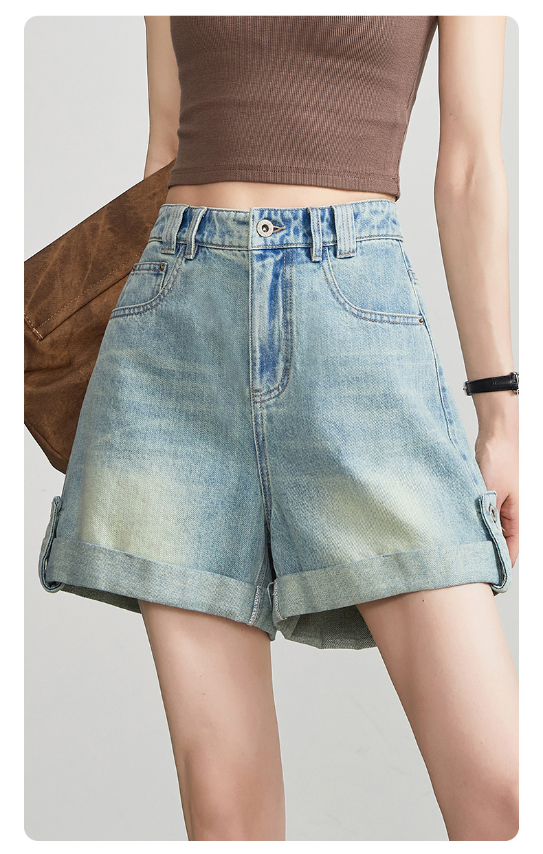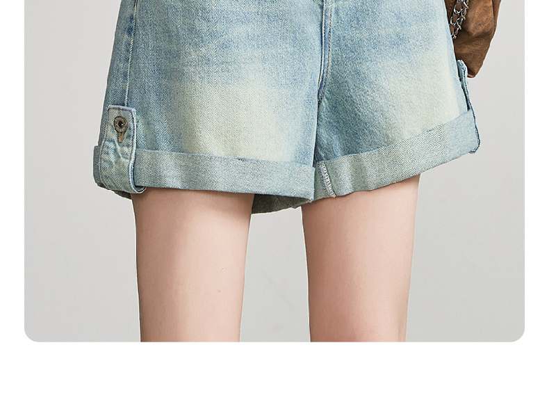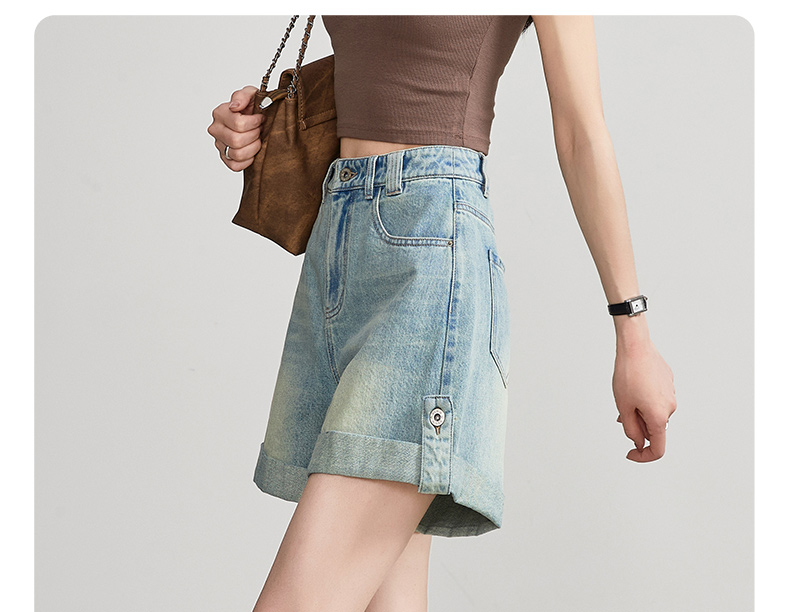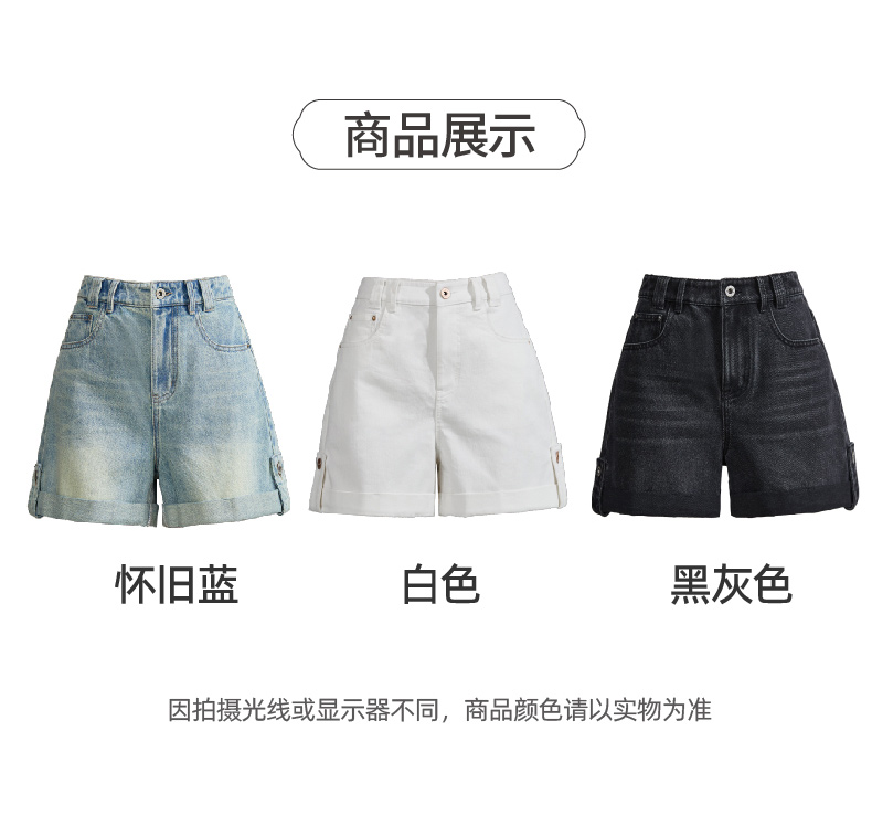 【四分翻边牛仔短裤】逸阳夏新款复古宽松显瘦裤子1080