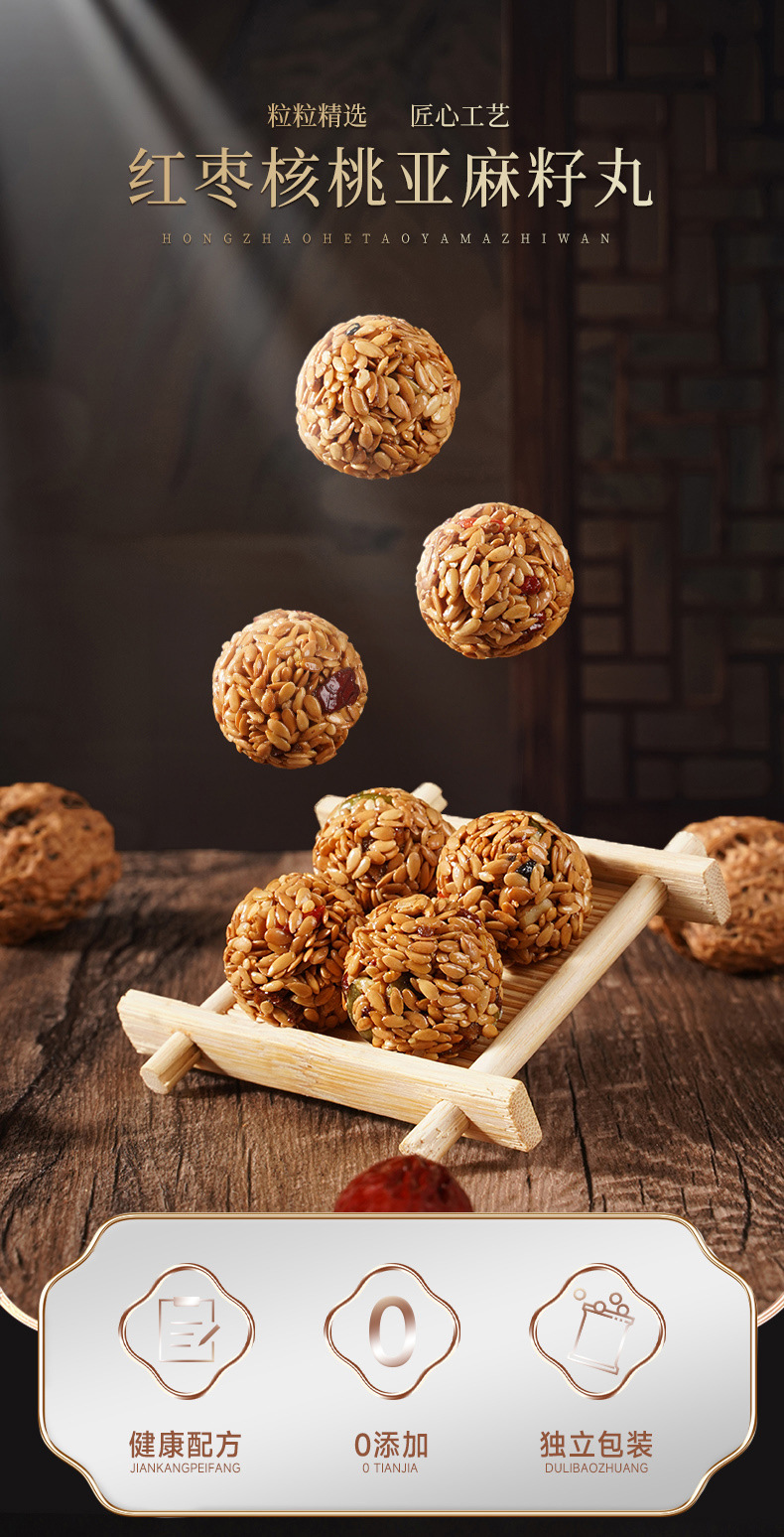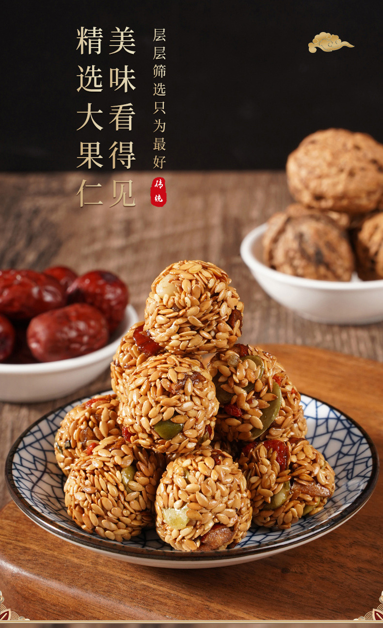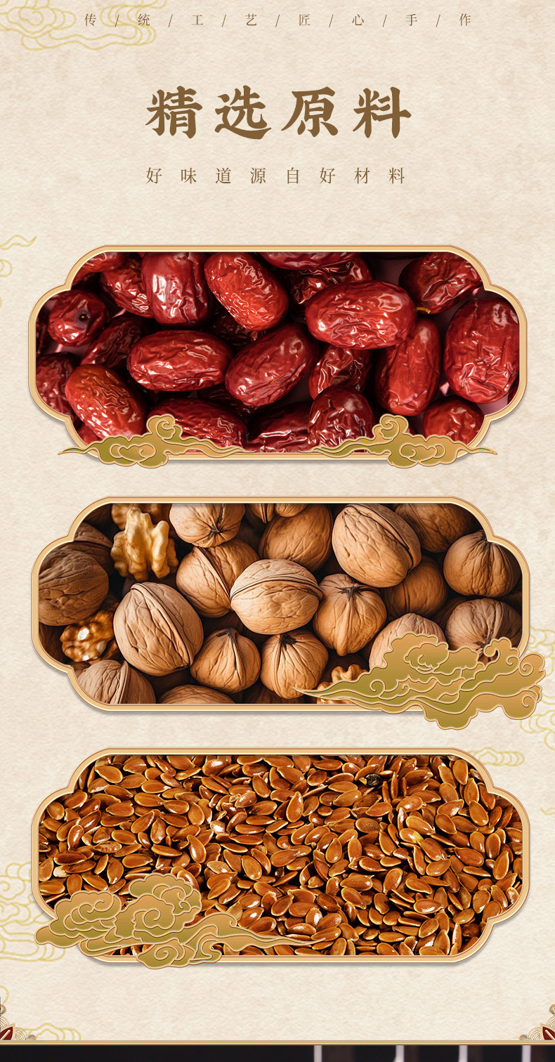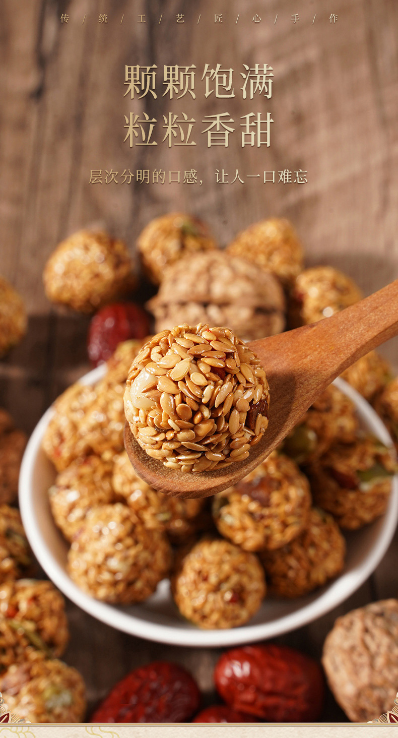 【食疗滋补!红枣核桃亚麻籽丸】颗颗人工精选,大果仁,美味营养看得见,不单独添加健康无负担,中老年人下午茶休闲代餐食品L