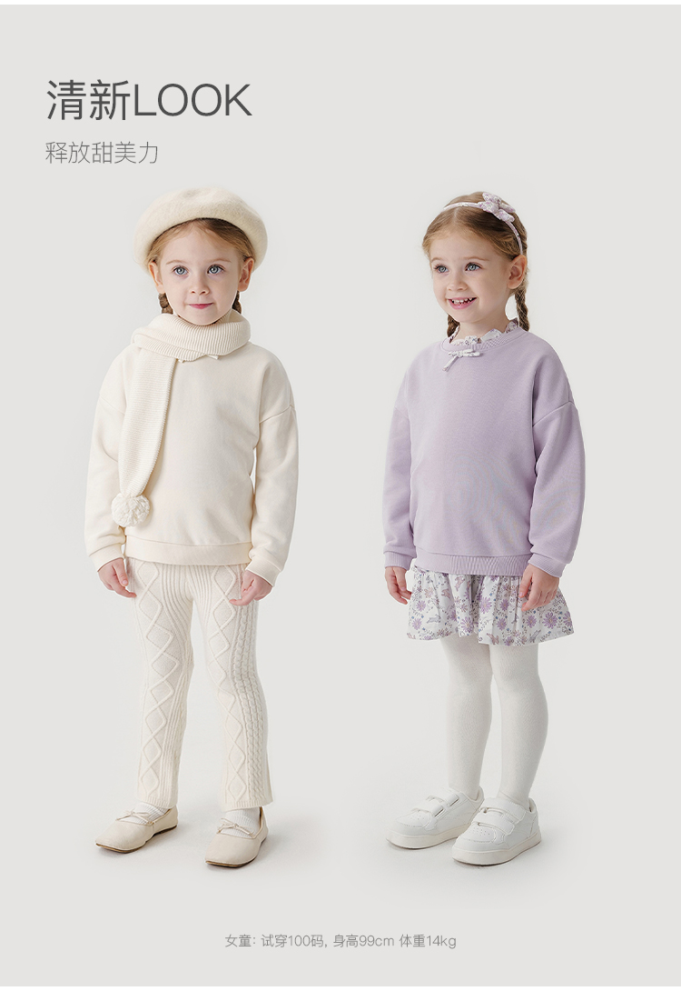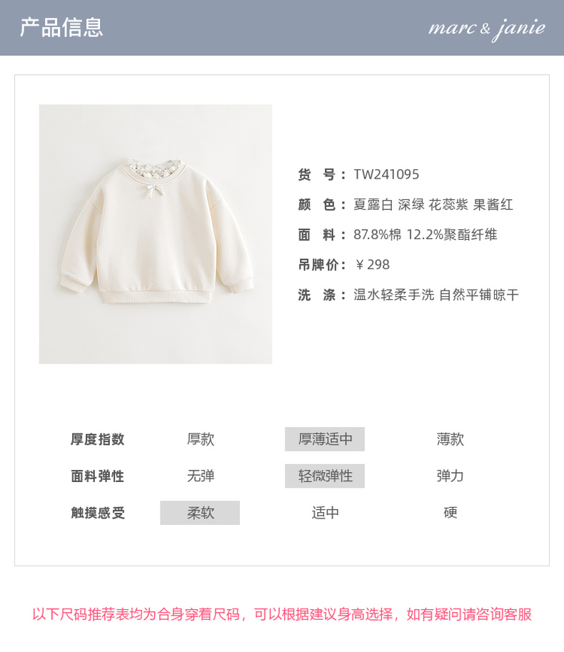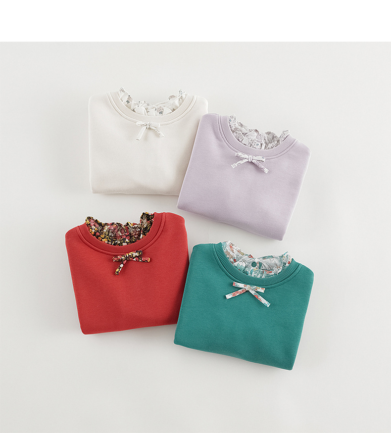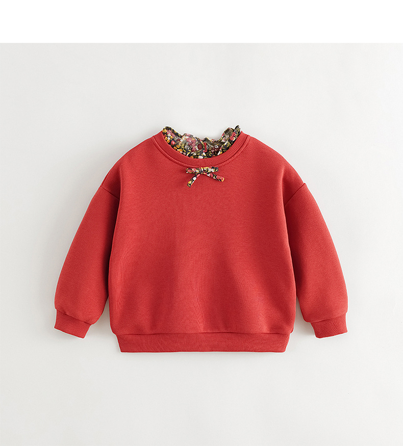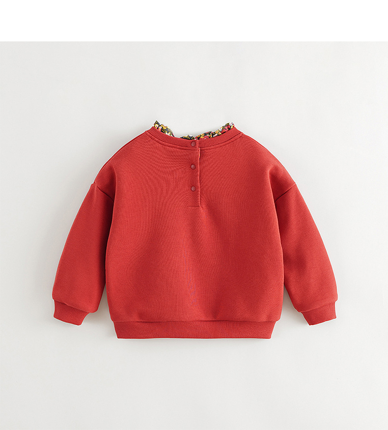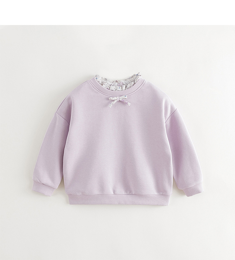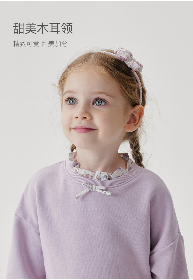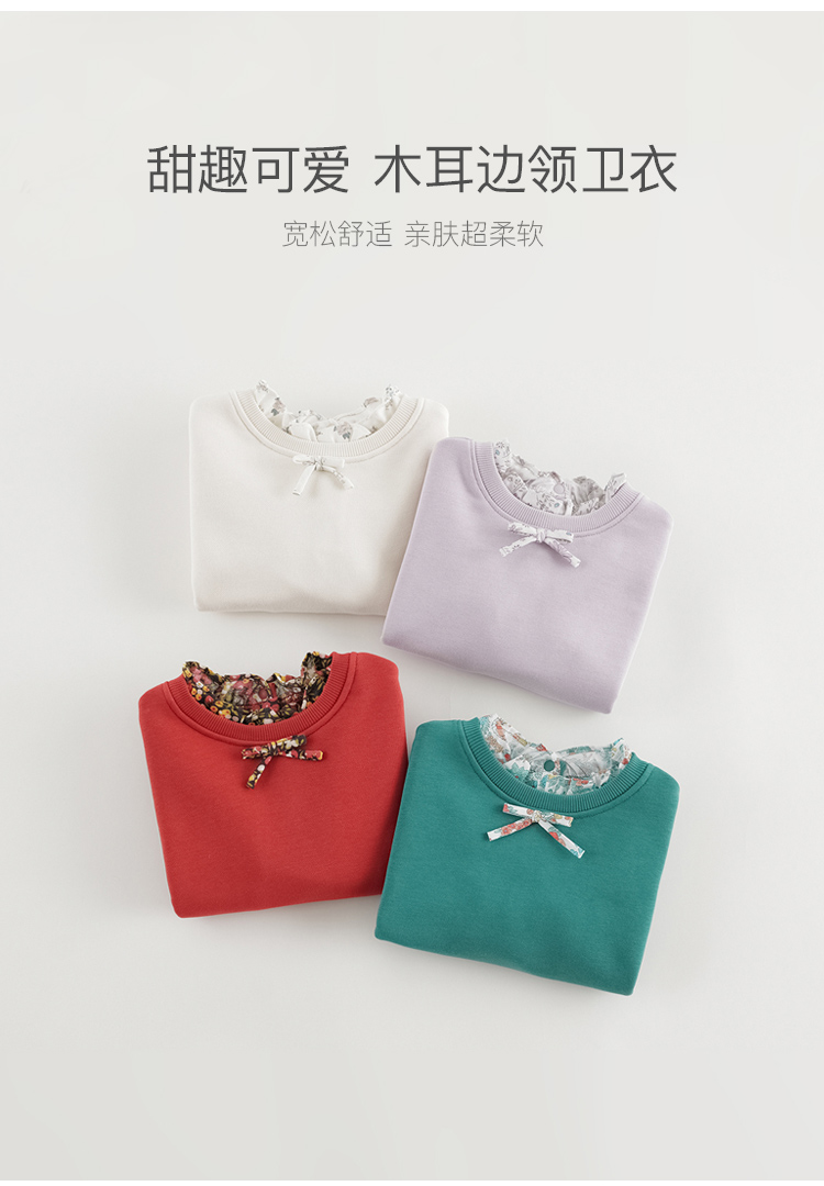 马克珍妮女童法式甜美木耳边卫衣儿童宽松上衣2024秋装新款241095