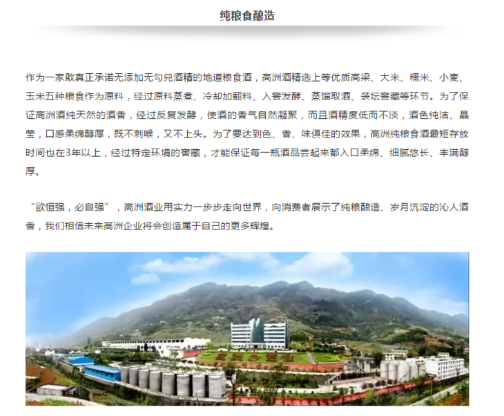 高洲美酒得益于得天独厚的地理环境,更得益于百年来的匠心传承。作为全球最大的原酒基地,供应量覆盖中国白酒一线品牌的半壁江山。精选材料,匠心酿造,让高洲美酒传遍四海。