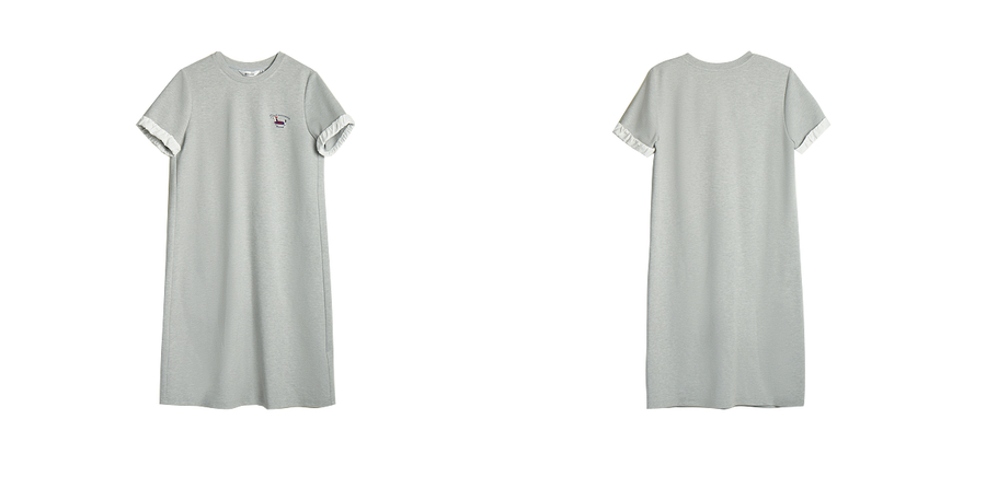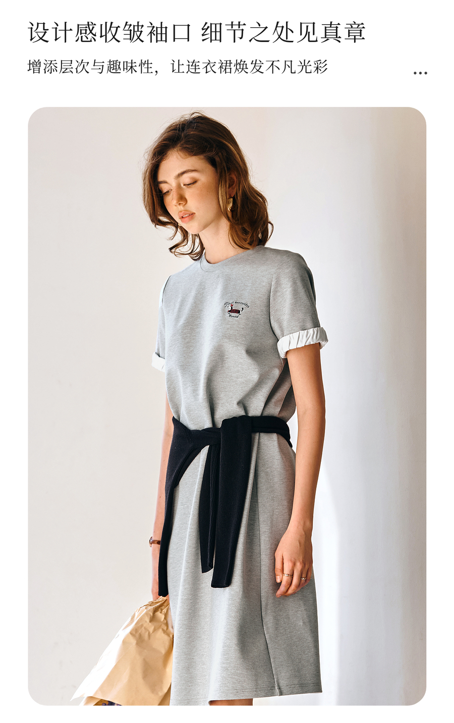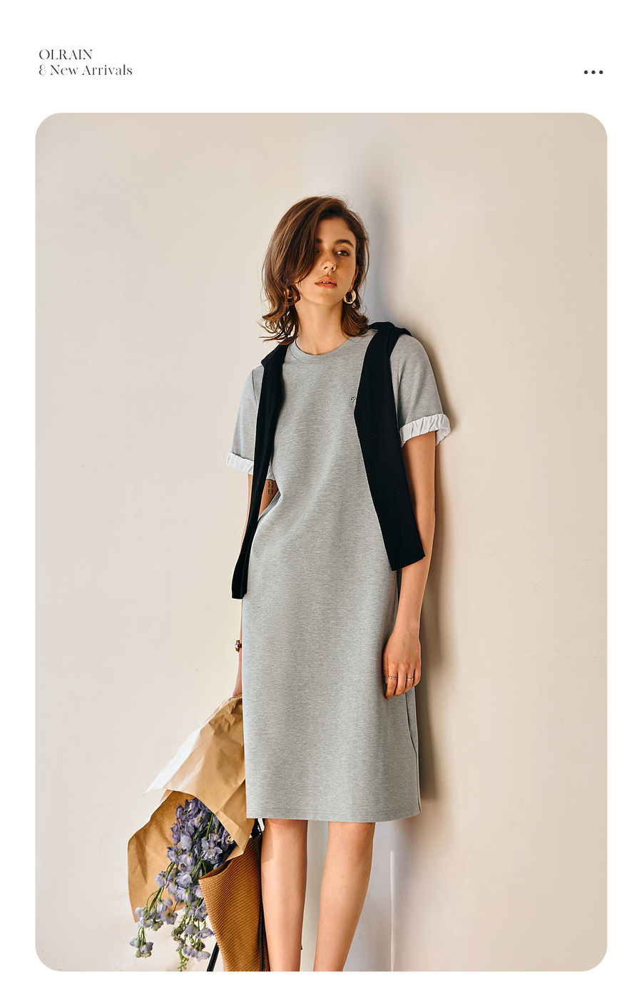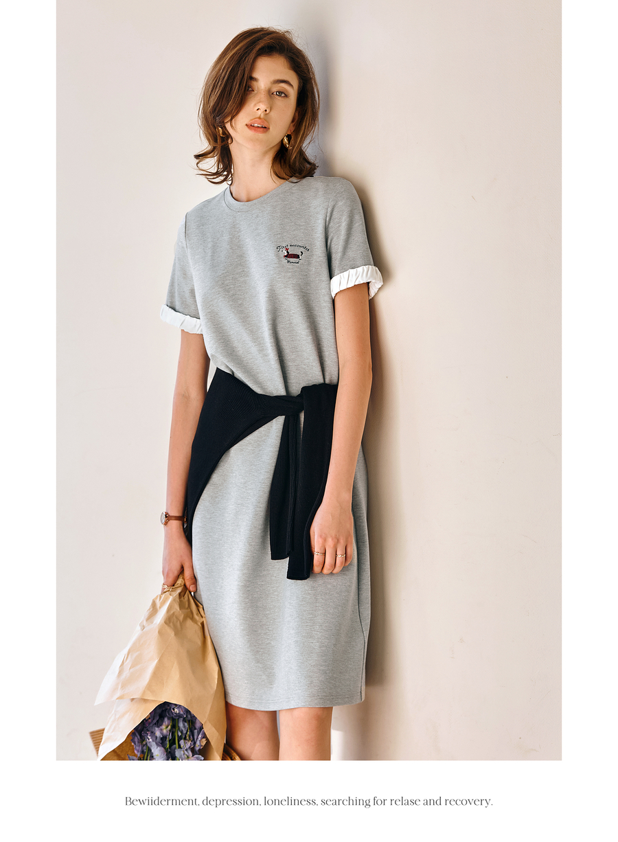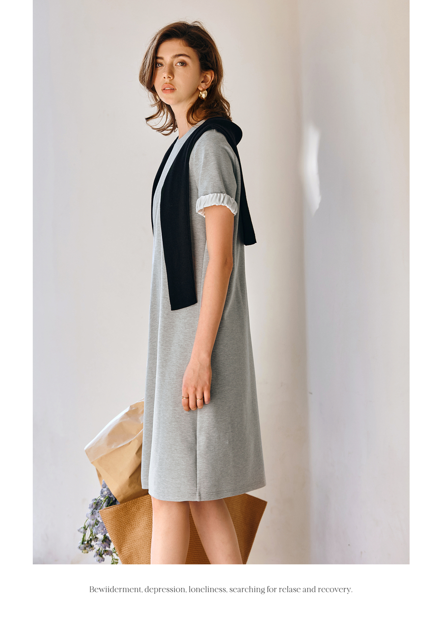 OLrain欧芮儿灰色休闲设计感连衣裙女春季2025年新款宽松撞色裙子